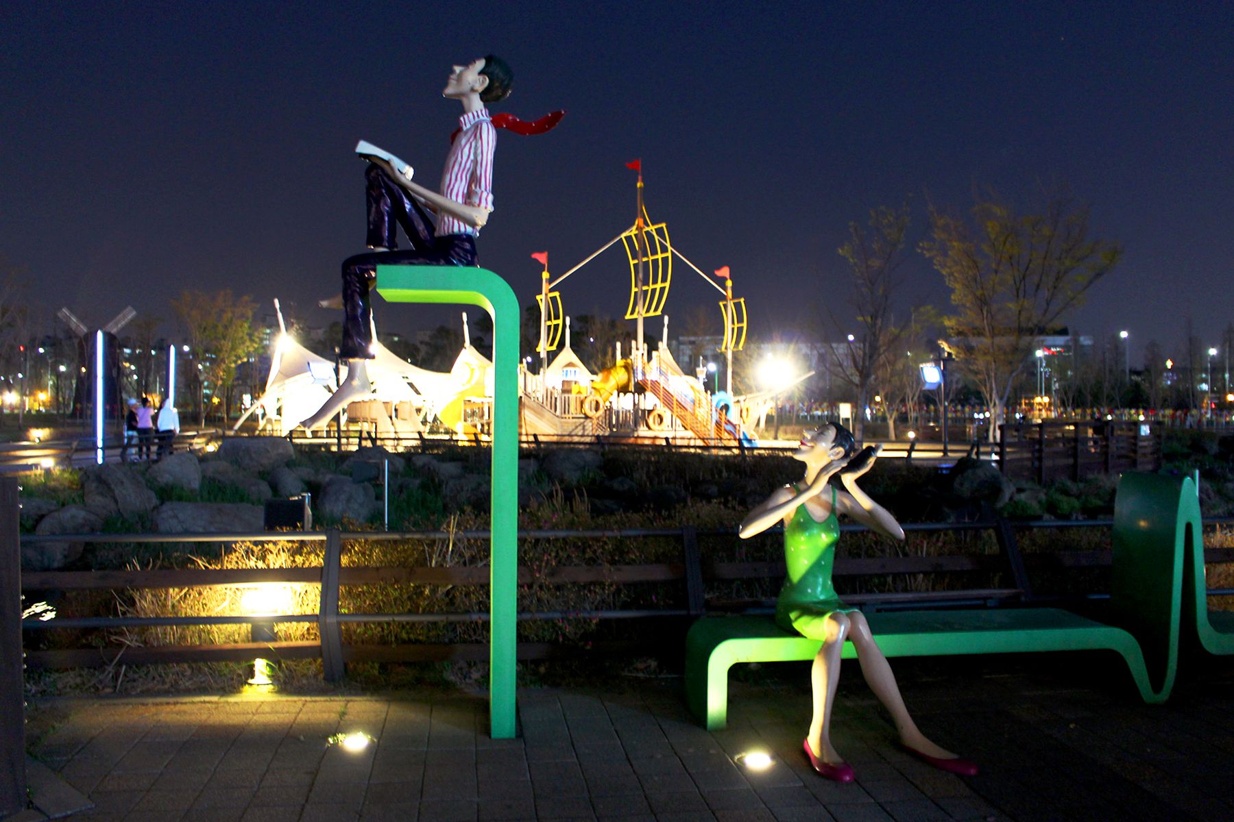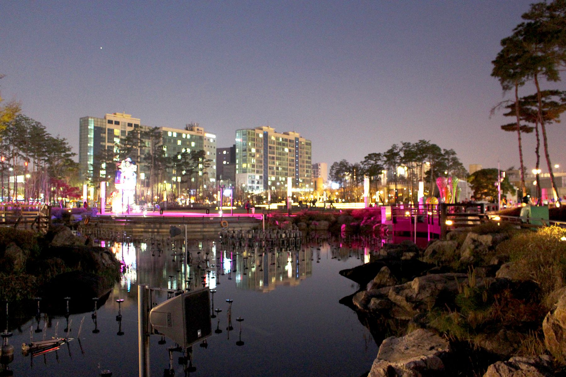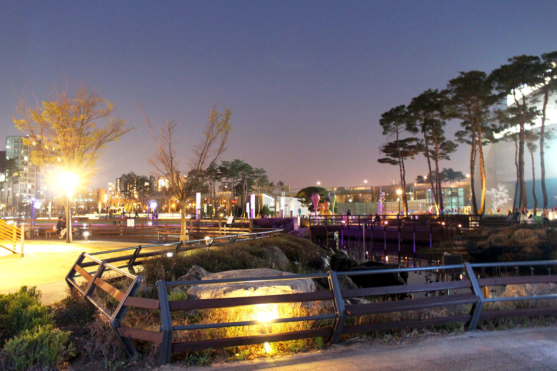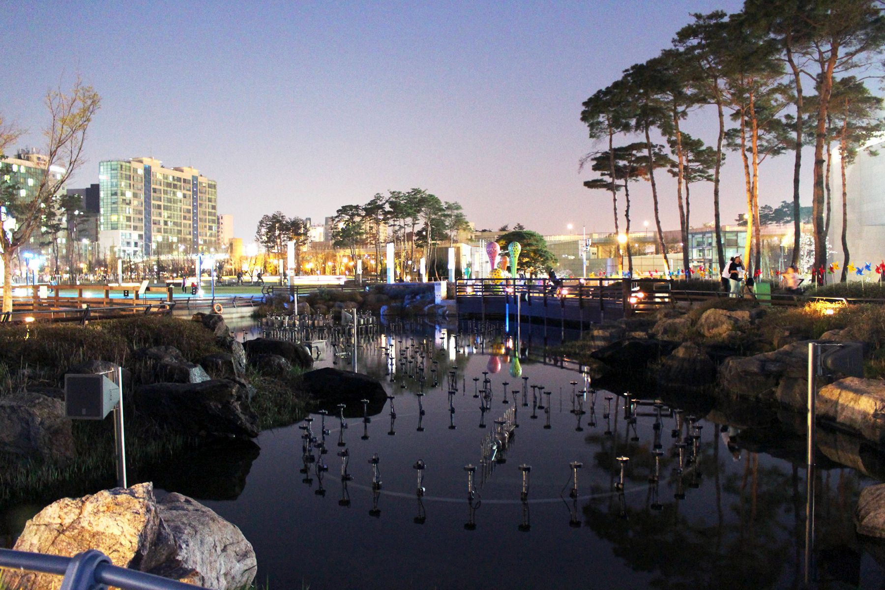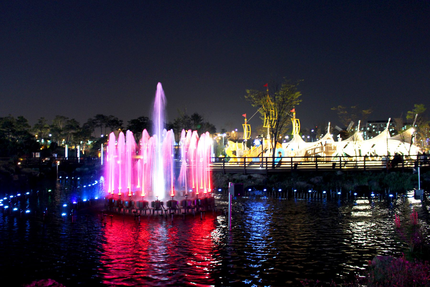 낮과는 또다른 분위기를 자아내는 김포공항 스카이파크 속 레이크파크의 야경은