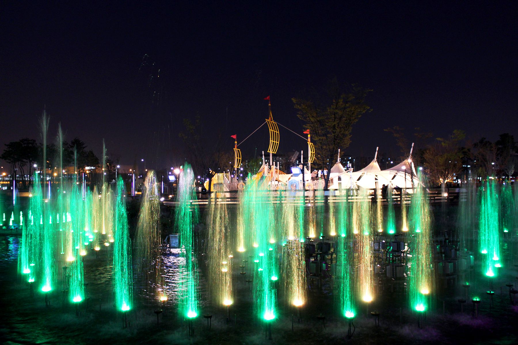 레이크파크의 분수는 음악분수와 프로그램분수로 나뉘어 연출되는데요,