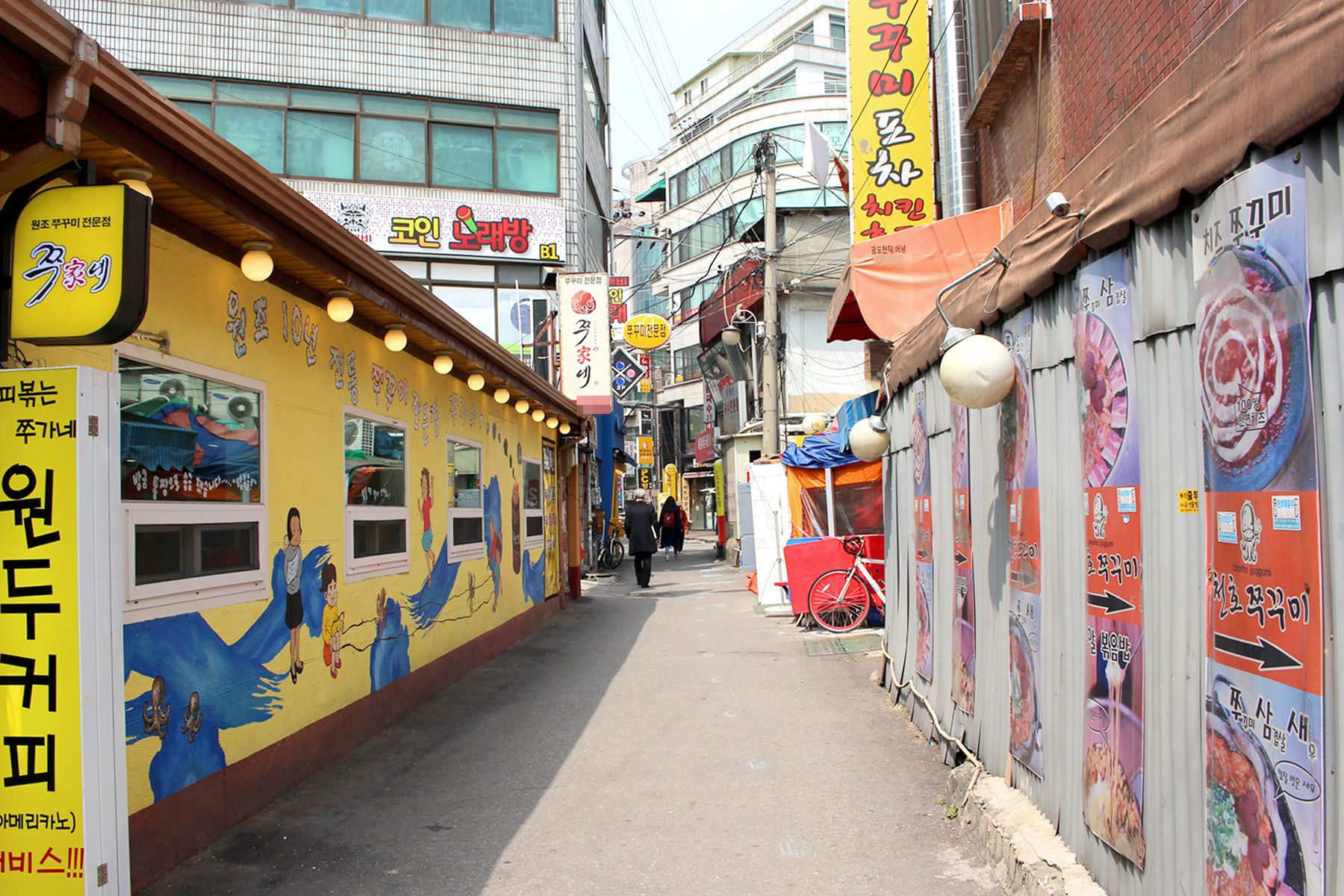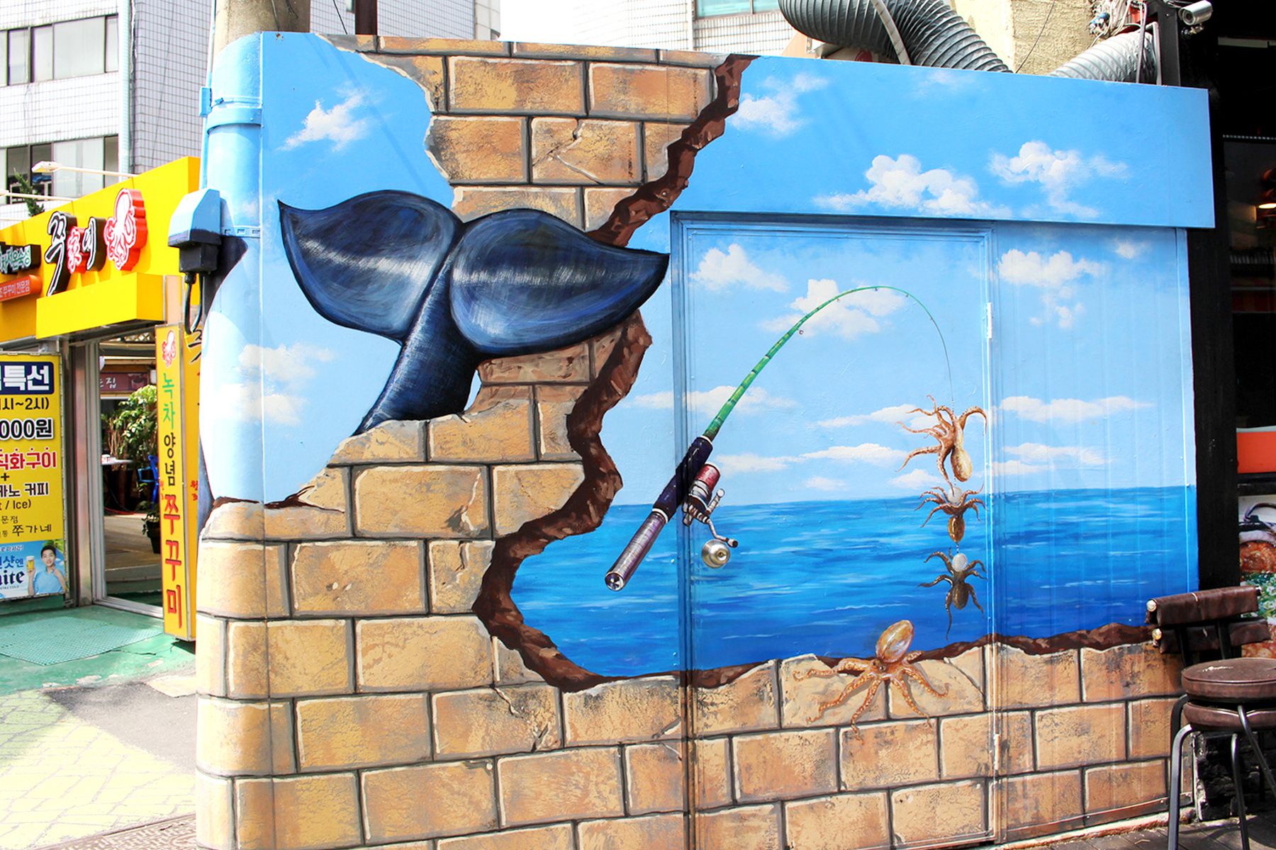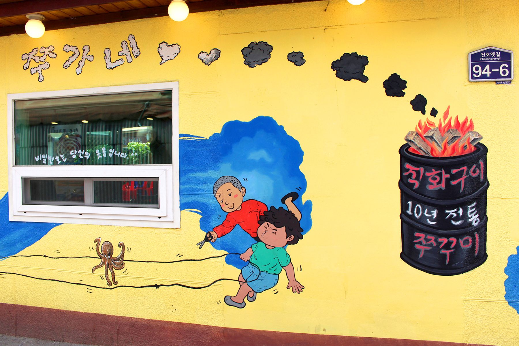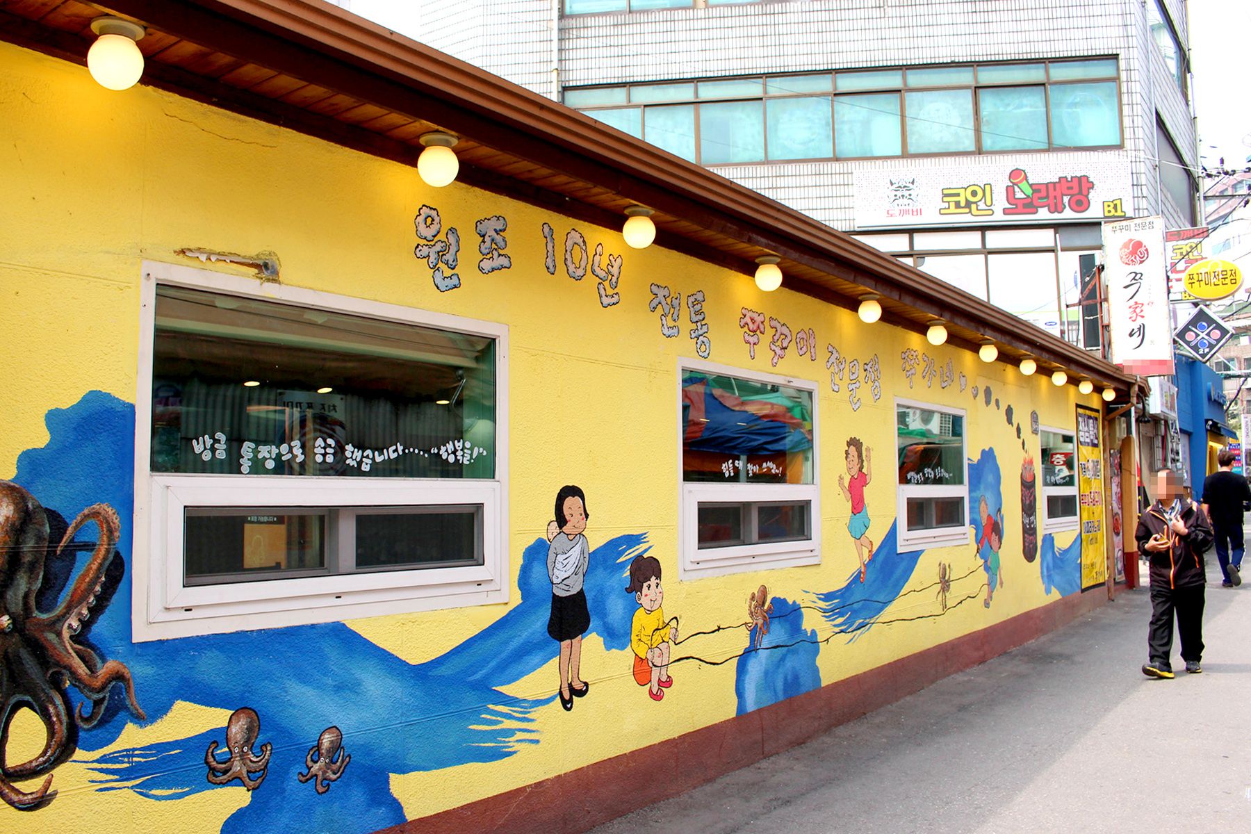 쭈꾸미골목 한켠에 그려져있는 그림은 색다른 재미를 주고 있으며,