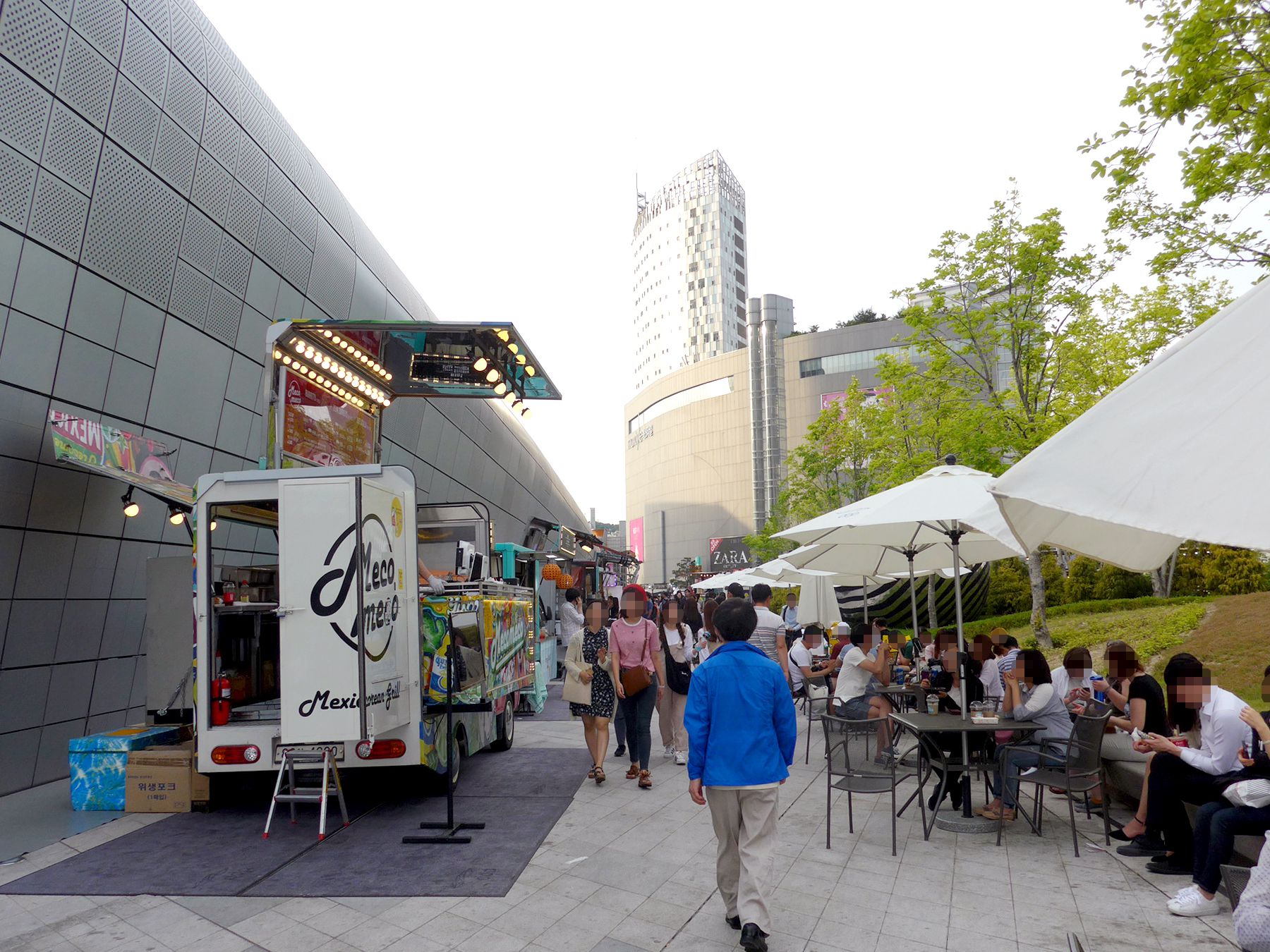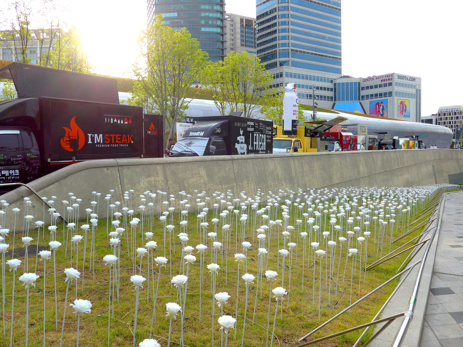 DDP의 은은한 LED 장미를 바라보며 푸드트럭에서 구매한 음식을 즐길 수 있는 공간으로 로맨틱한 서울의 밤을 함께해보시길 바랍니다.
