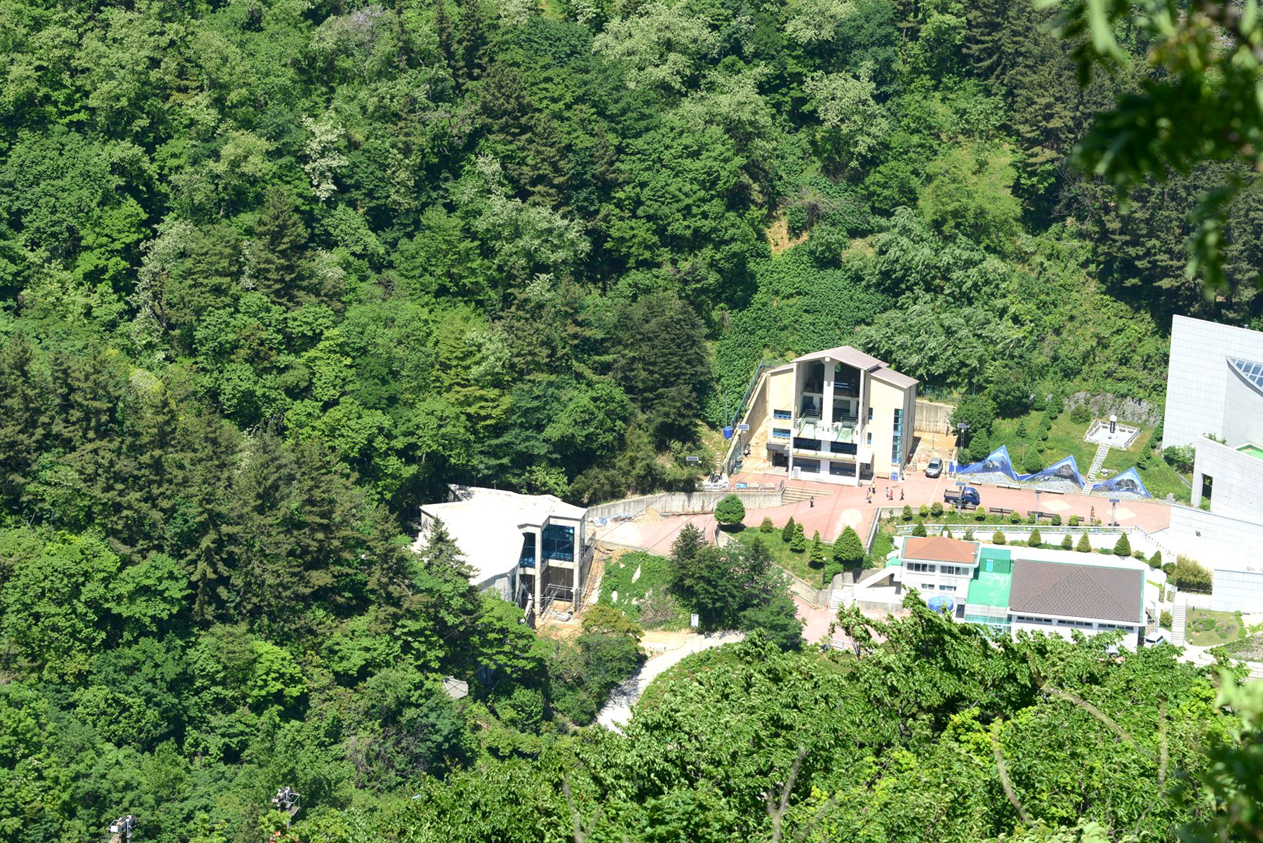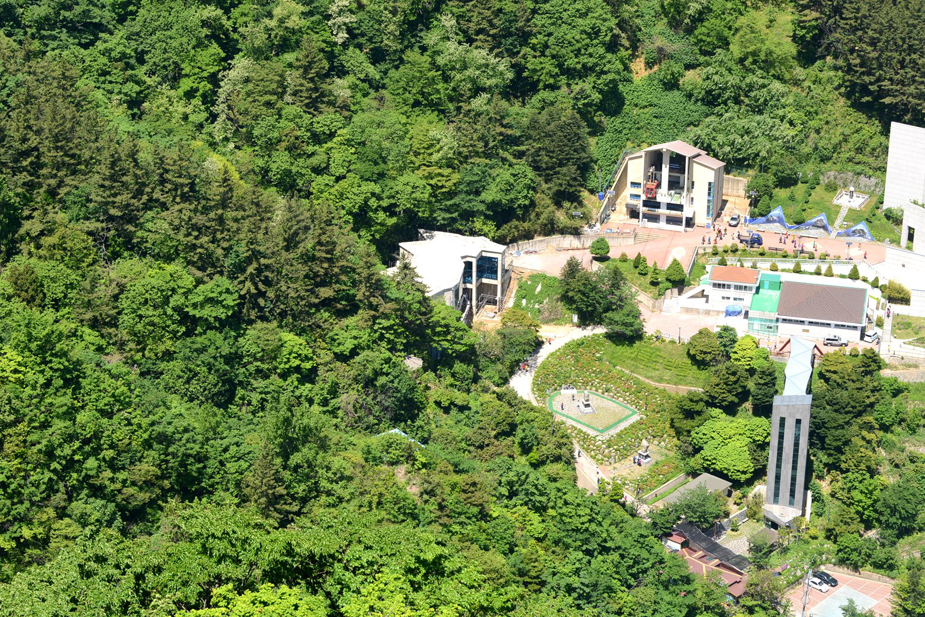 108개의 계단을 통해 올라갈 수 있지만 많은 관광객들이 케이블카를 이용하여 전망대로 오르고 있습니다.