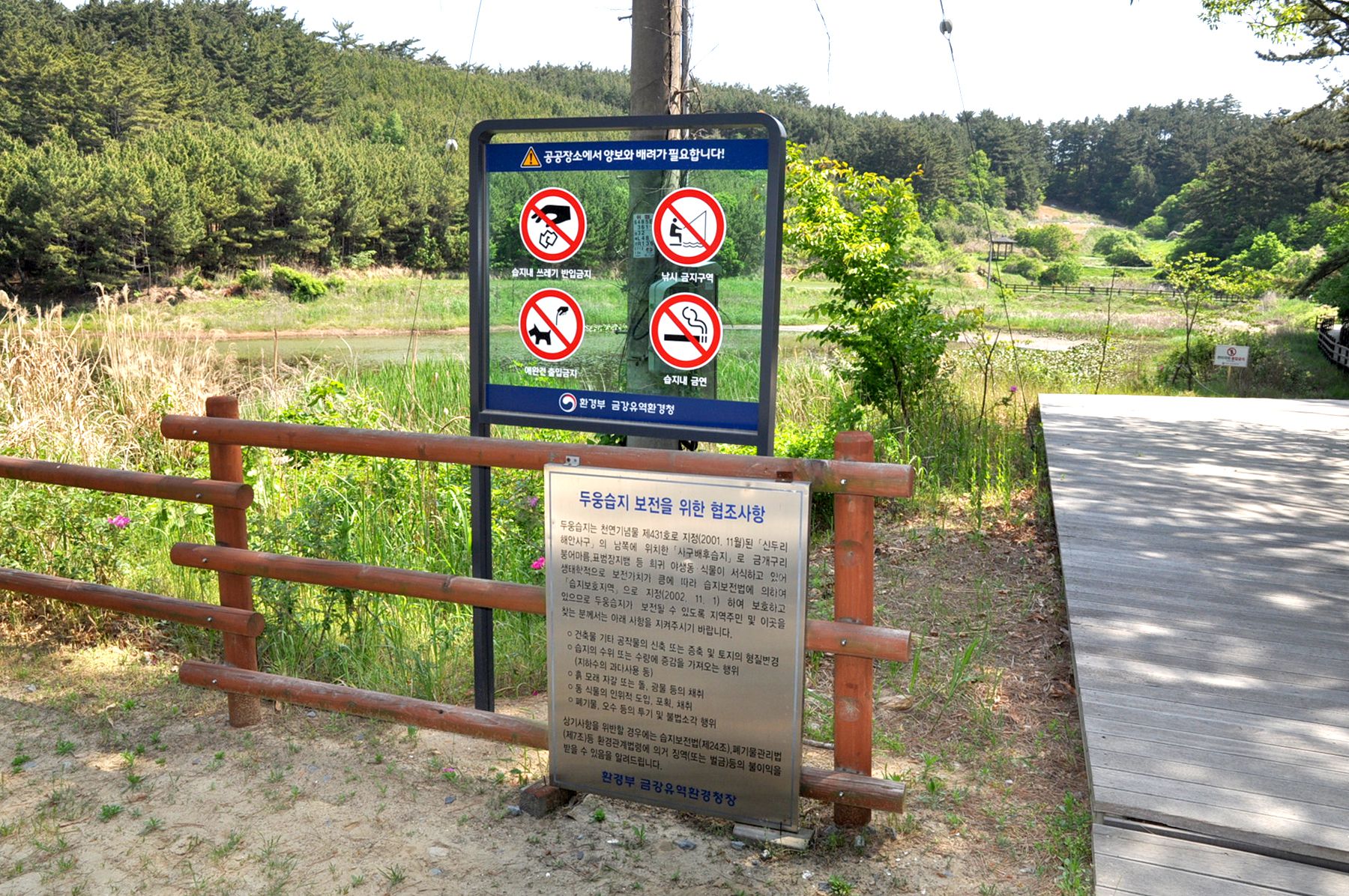 두웅습지 초입에는 탐방초소가 설치되어 있어 둘러보기전 참고하기 좋고, 생태탐방을 즐길 수 있는 안내판과 관람데크가 갖추어져 있기 때문에