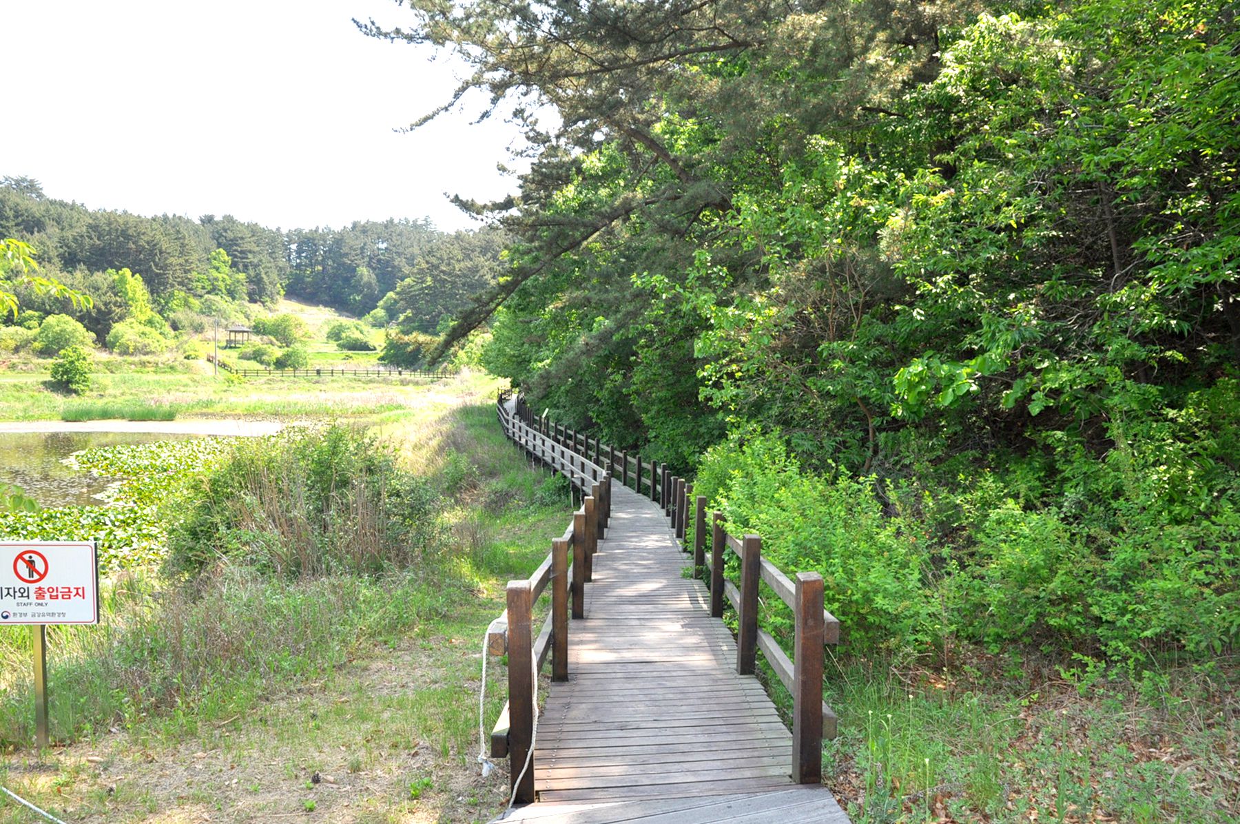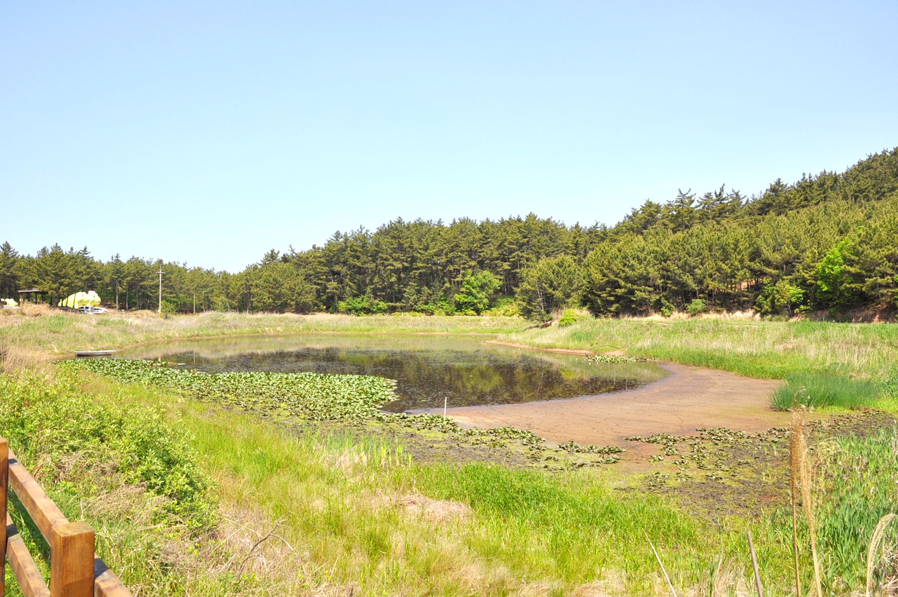 해안에 사구가 만들어지면서 사구지대와 배후산지 골짜기의 경계 부분에 담수가 고여 습지가 형성되었습니다.