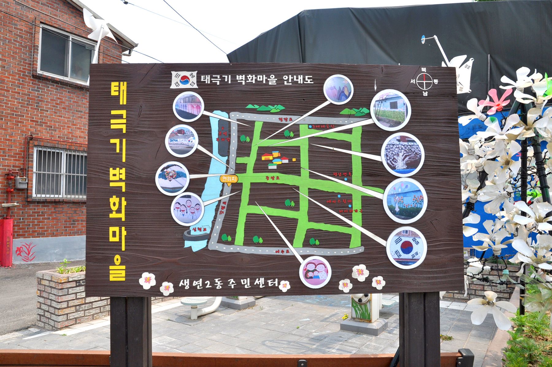 마을 입구에 태극기벽화마을 안내도가 마련되어 있어 마을 구경에 참고할 수 있습니다.