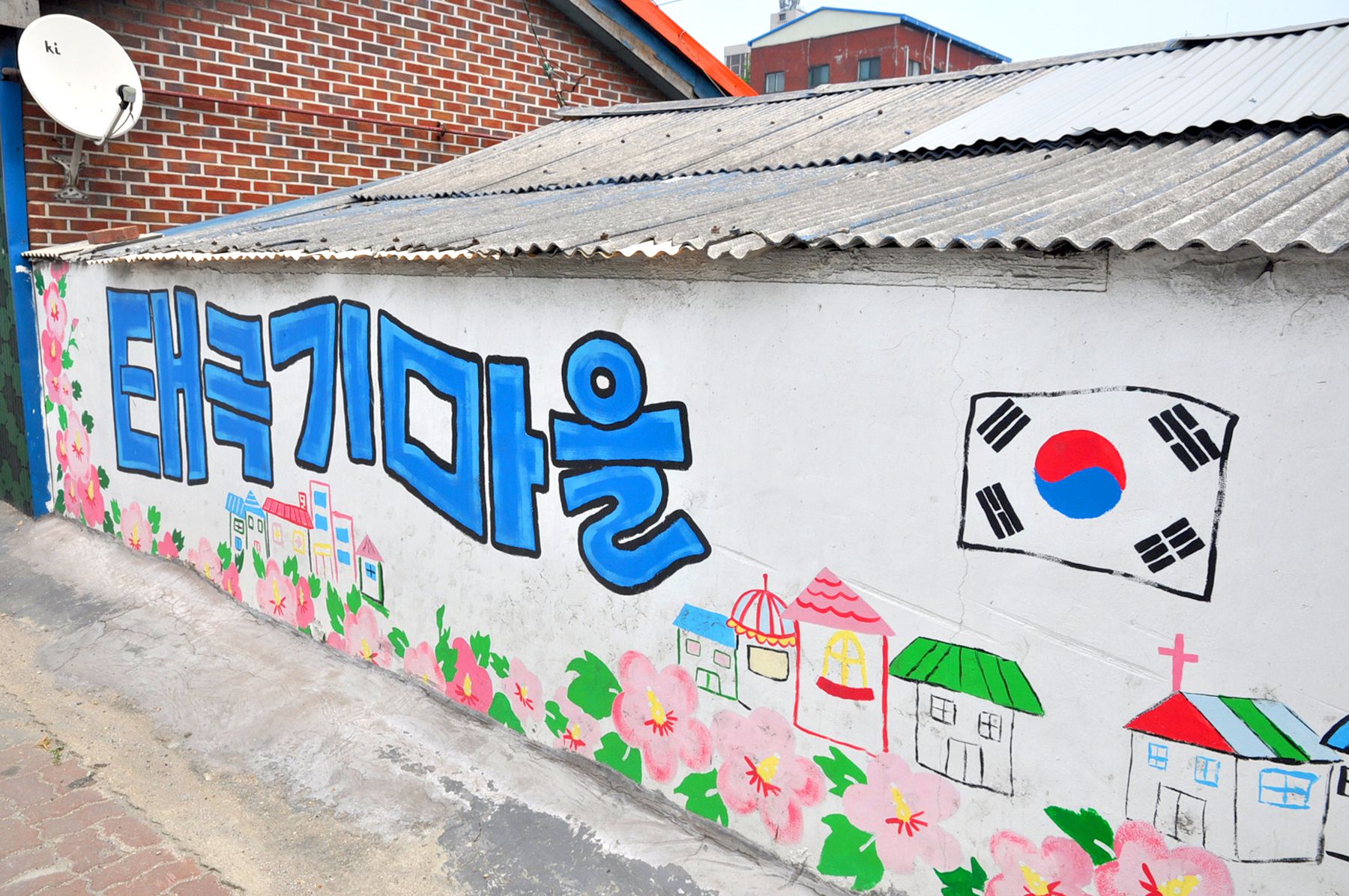 동두천 태극기벽화마을은 지역공동체 활성화 사업의 일환으로 담장 도색, 벽화그리기 등으로 벽화마을을 조성하고,