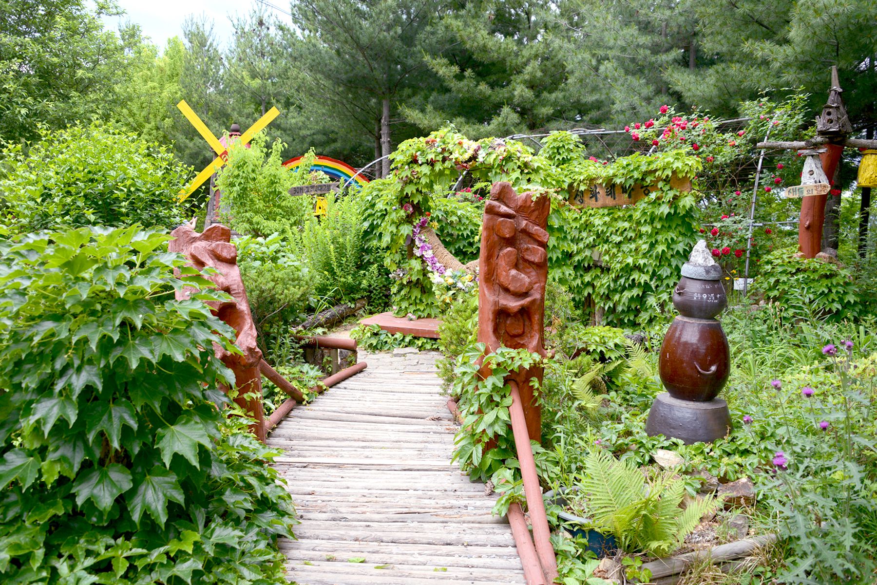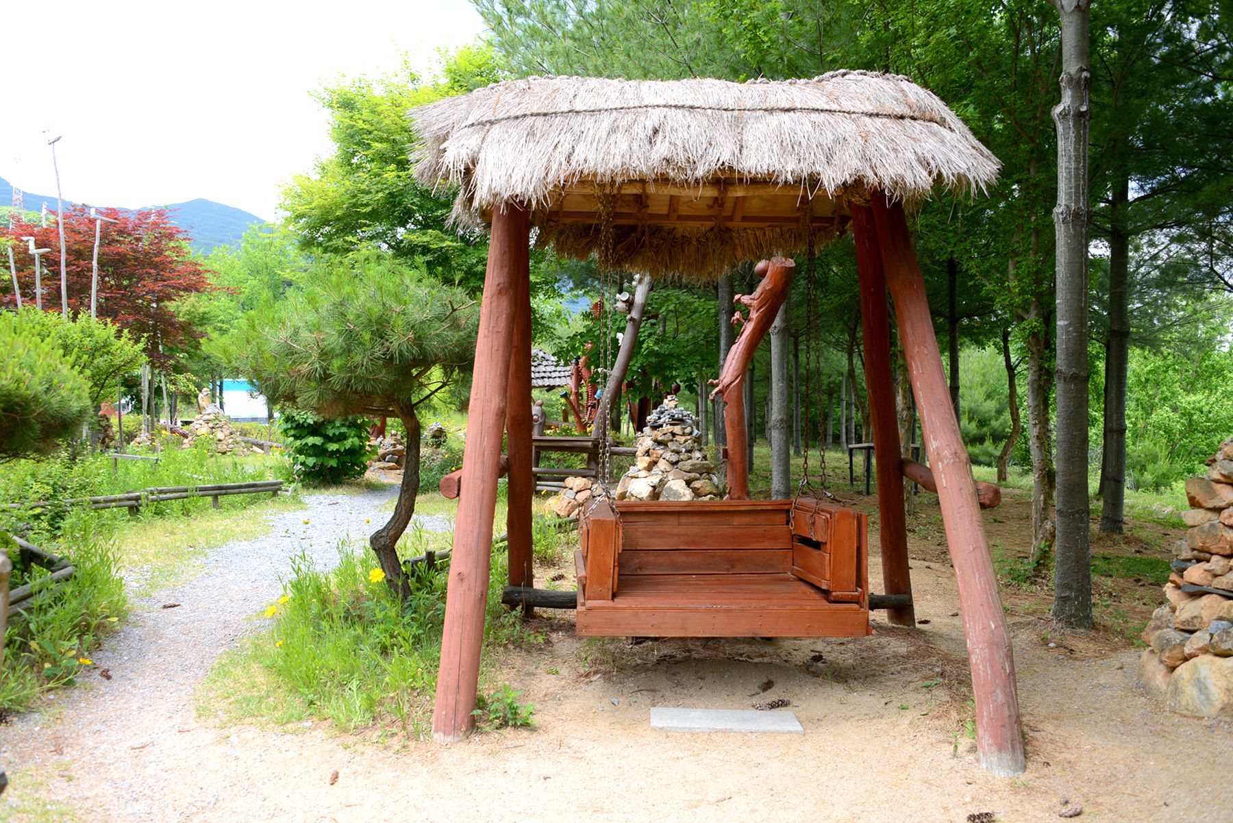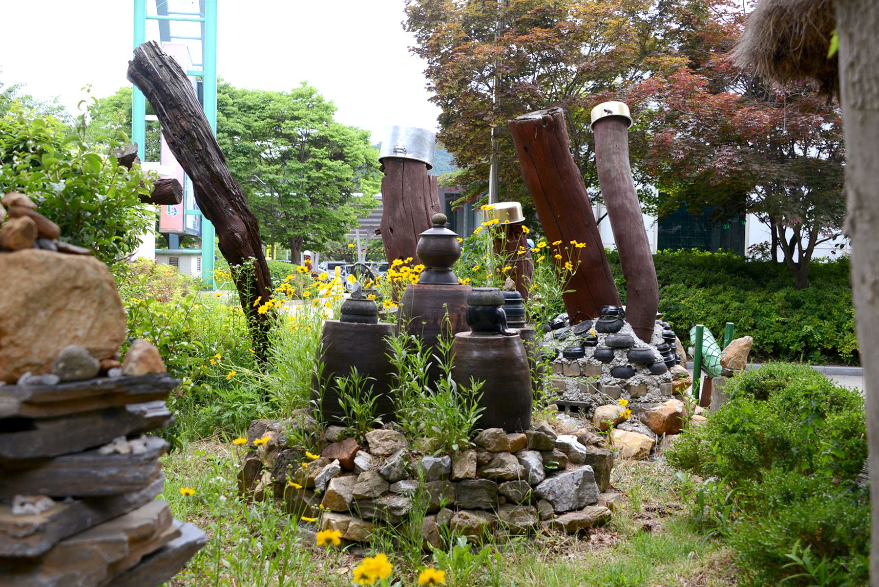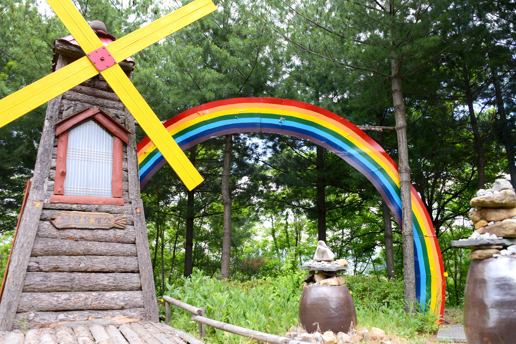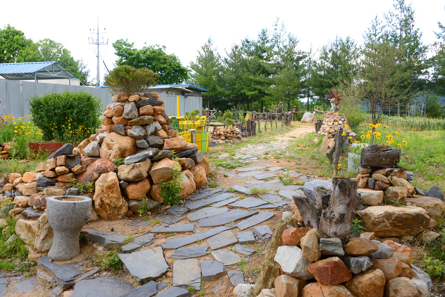많이 넓진 않지만 형형색색의 야생화 등으로 작은 숲을 꾸며놓았고, 나무조형물, 인형 등을 배치해놓아 아기자기한 느낌을 주고 있답니다.