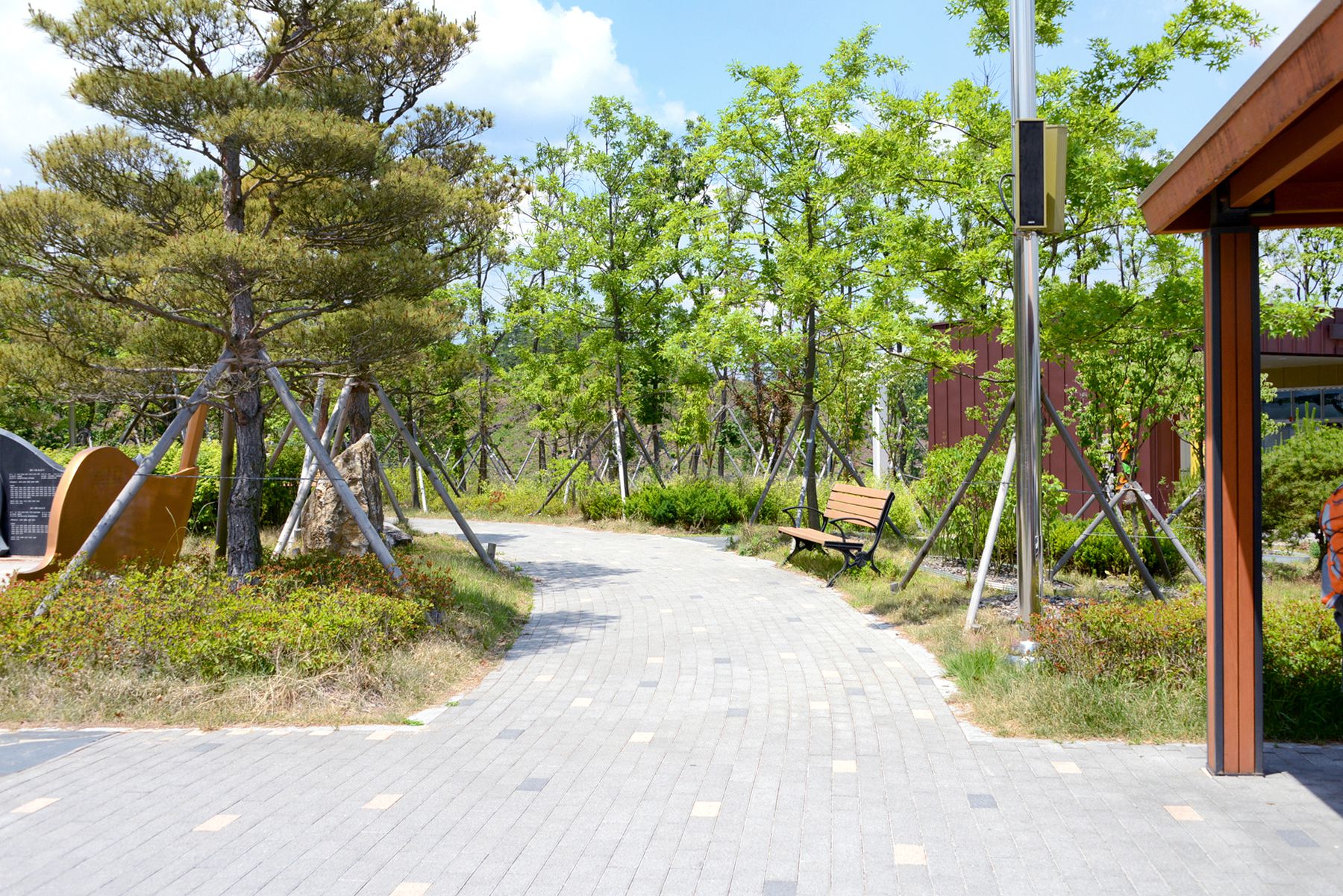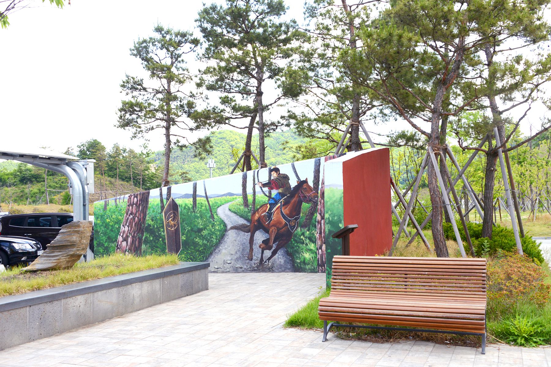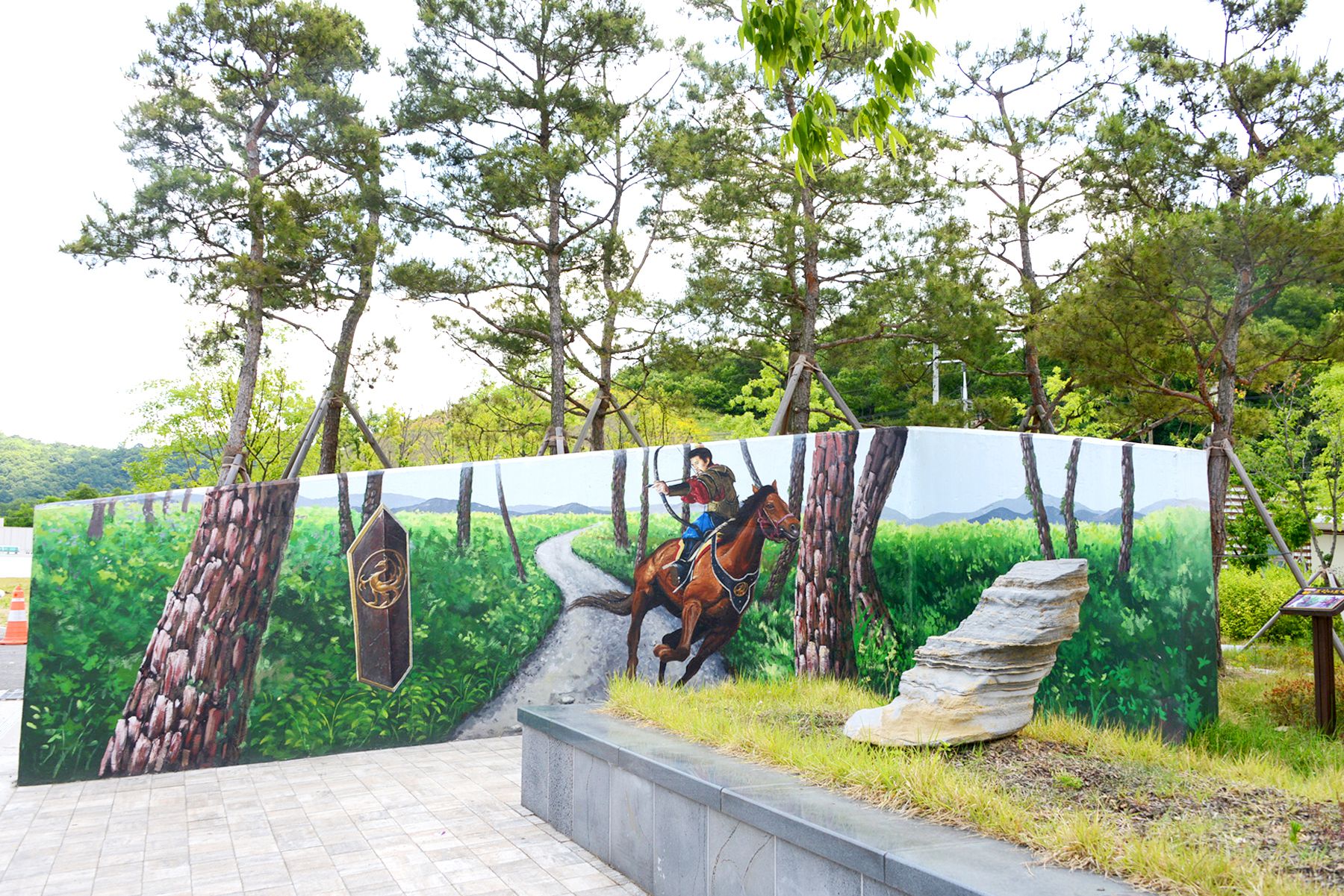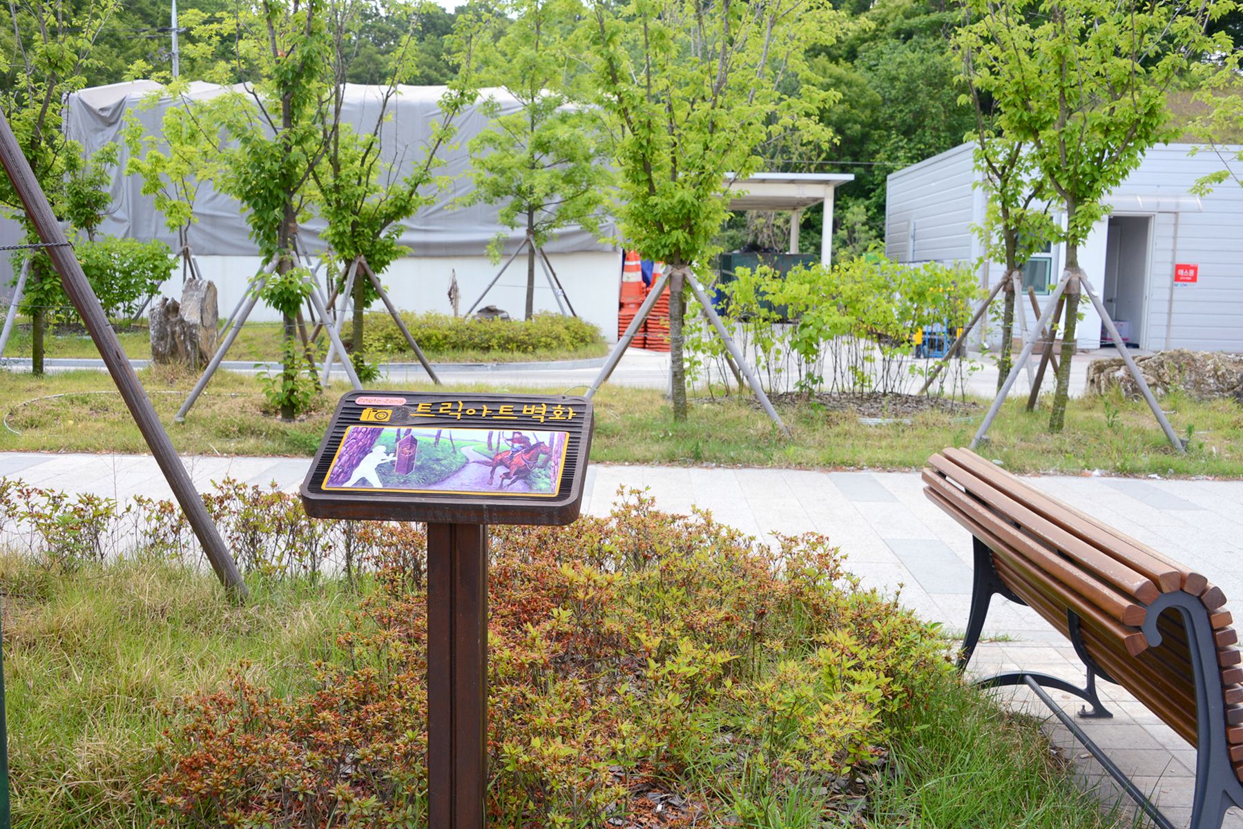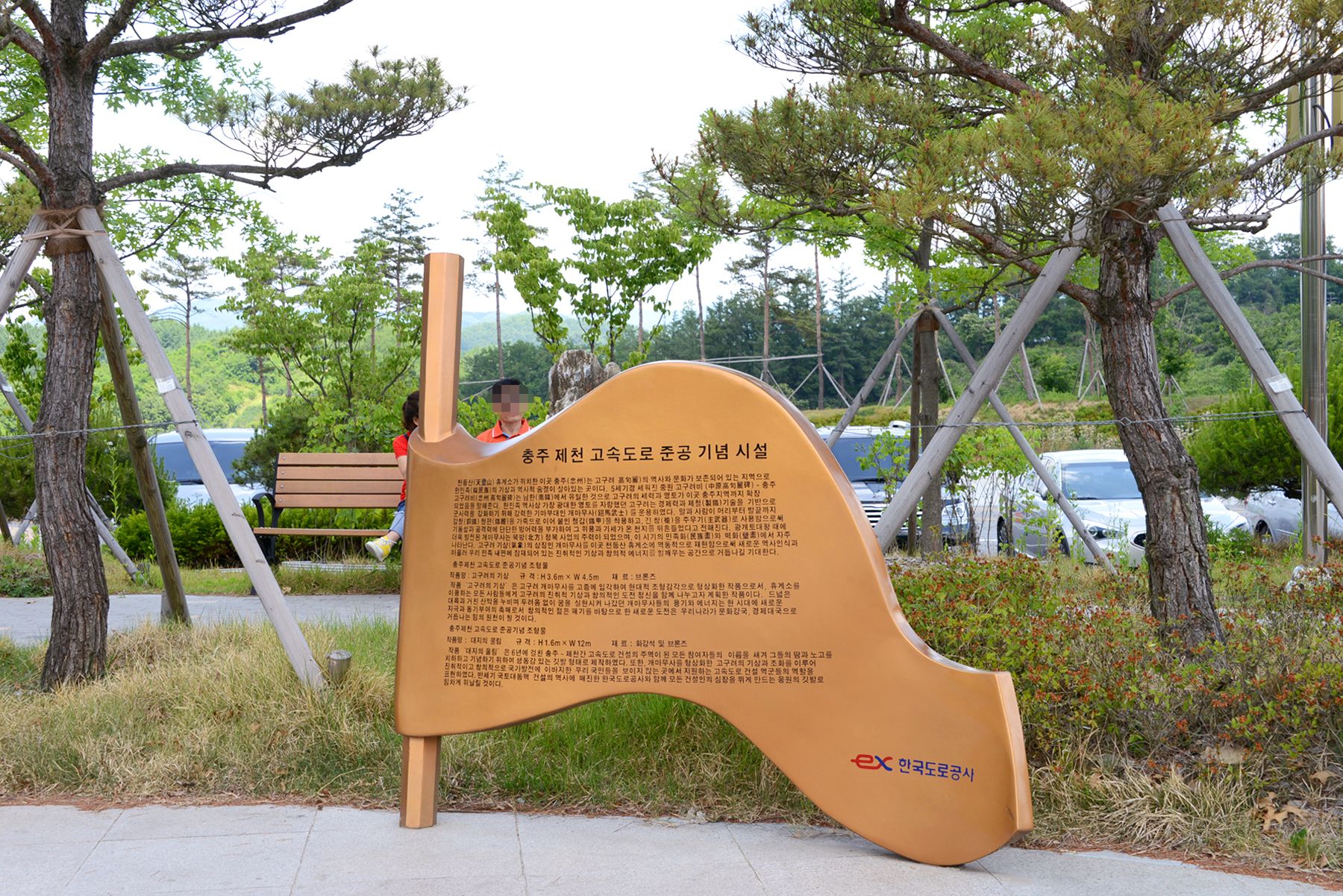 이 테마공원은 휴게소 화장실 뒤편 300여㎡의 터에 인조잔디가 깔린 산책로를 따라 만나볼 수 있습니다.