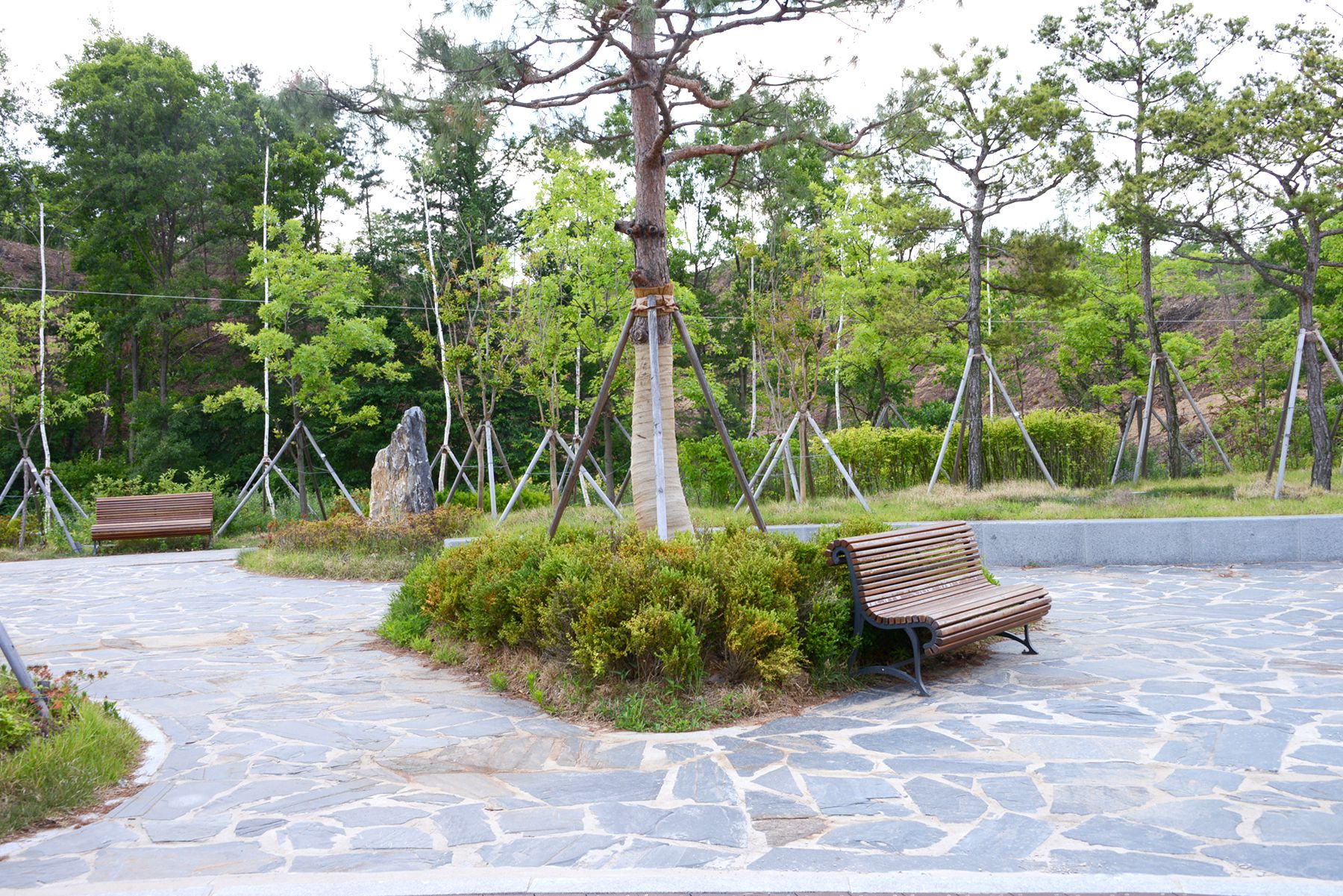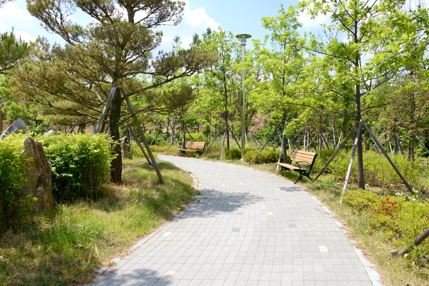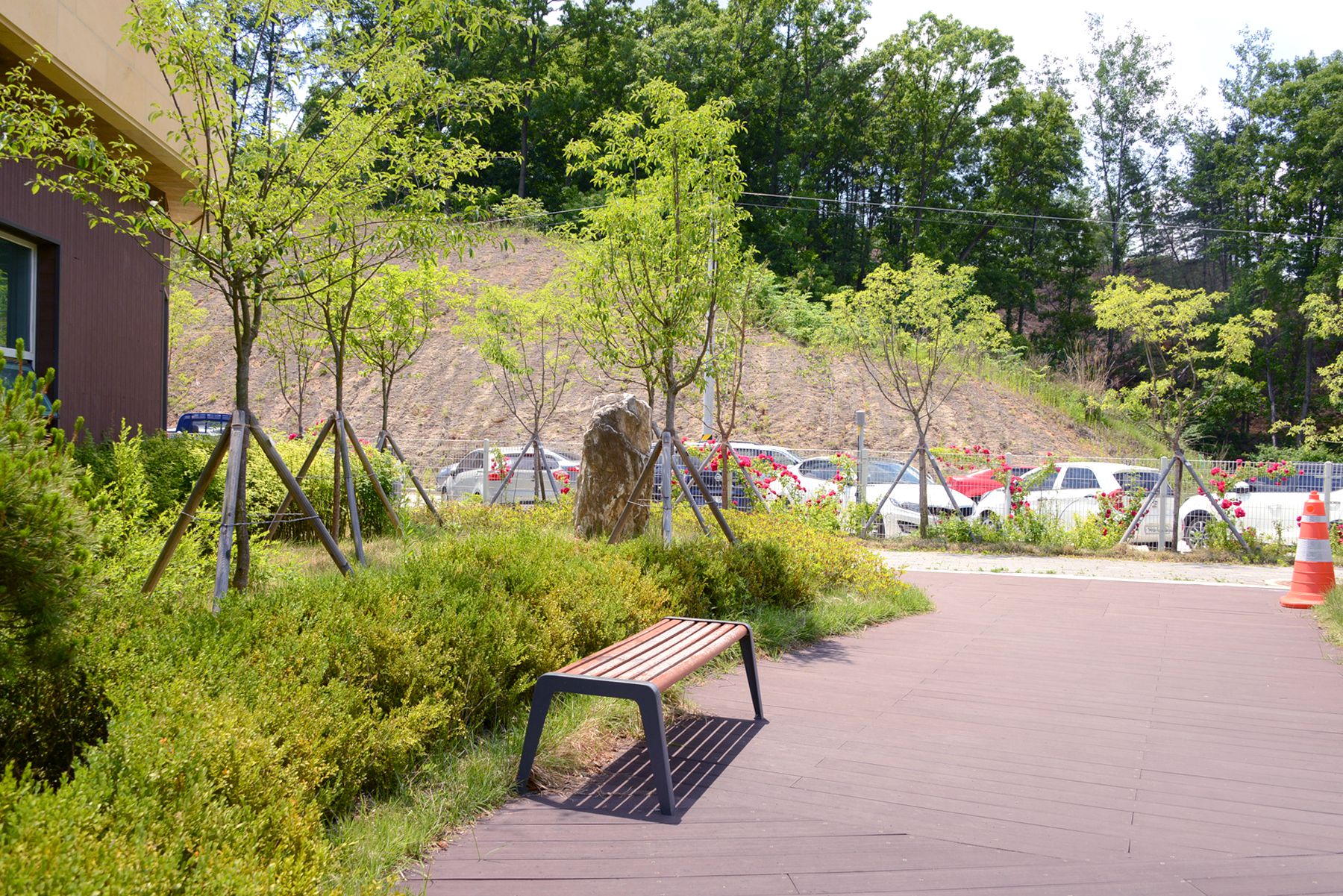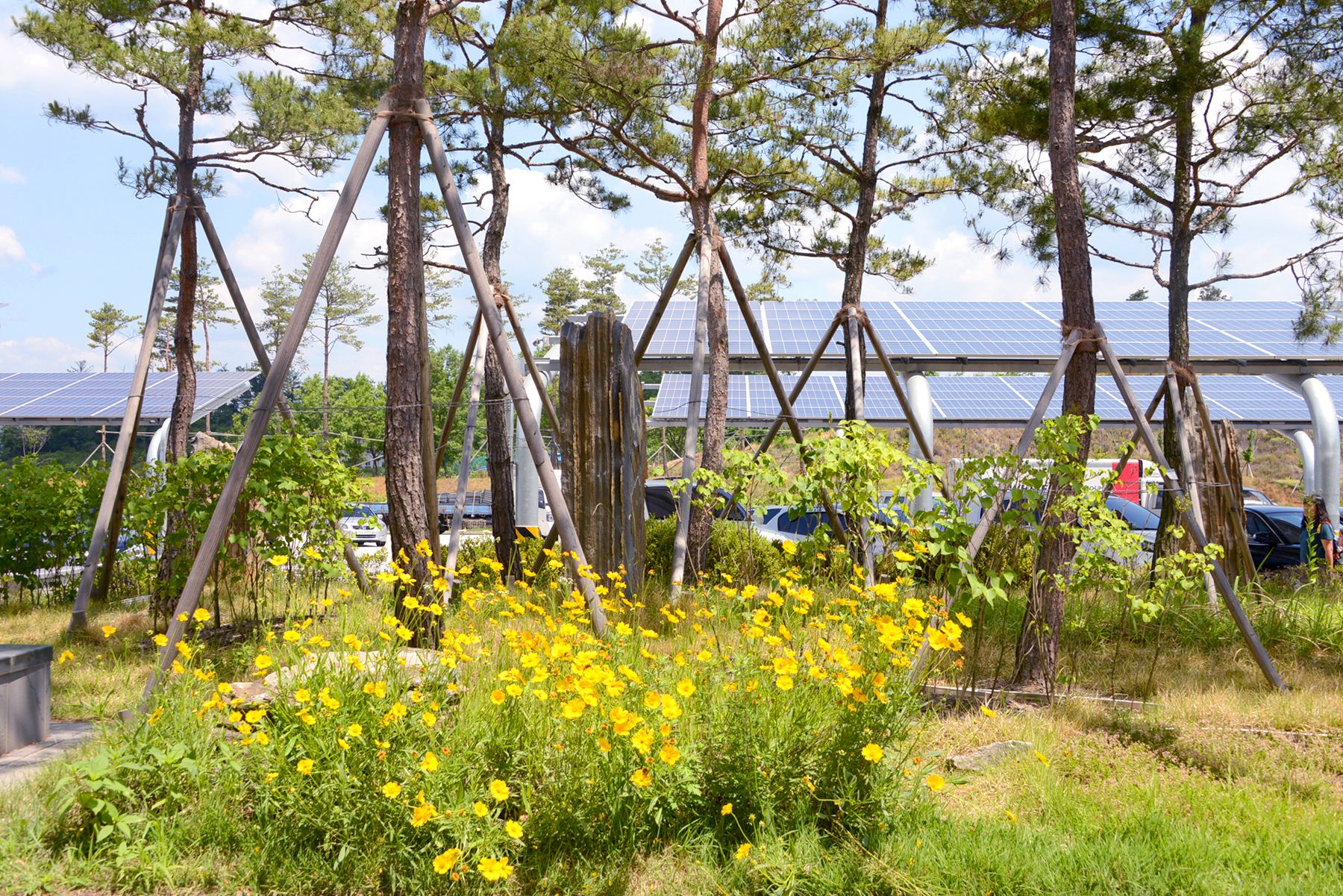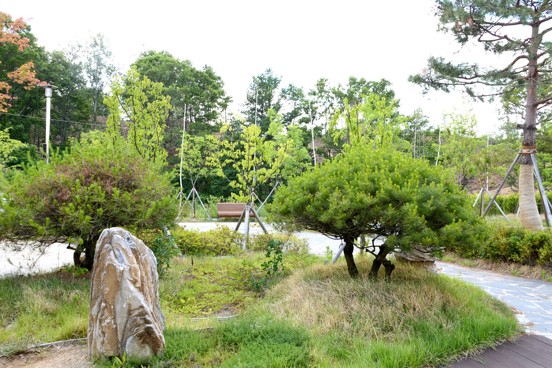 이 테마공원은 휴게소 화장실 뒤편 300여㎡의 터에 인조잔디가 깔린 산책로를 따라 만나볼 수 있습니다.