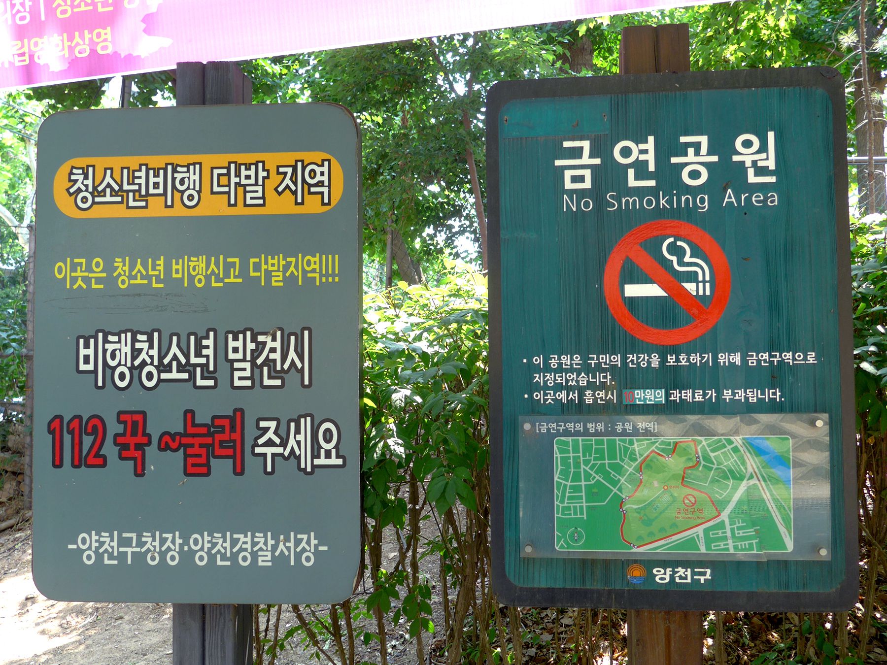 용왕산근린공원의 곳곳에는 안내표지판과 지켜야할 규칙사항 등이 배치되어 있습니다.