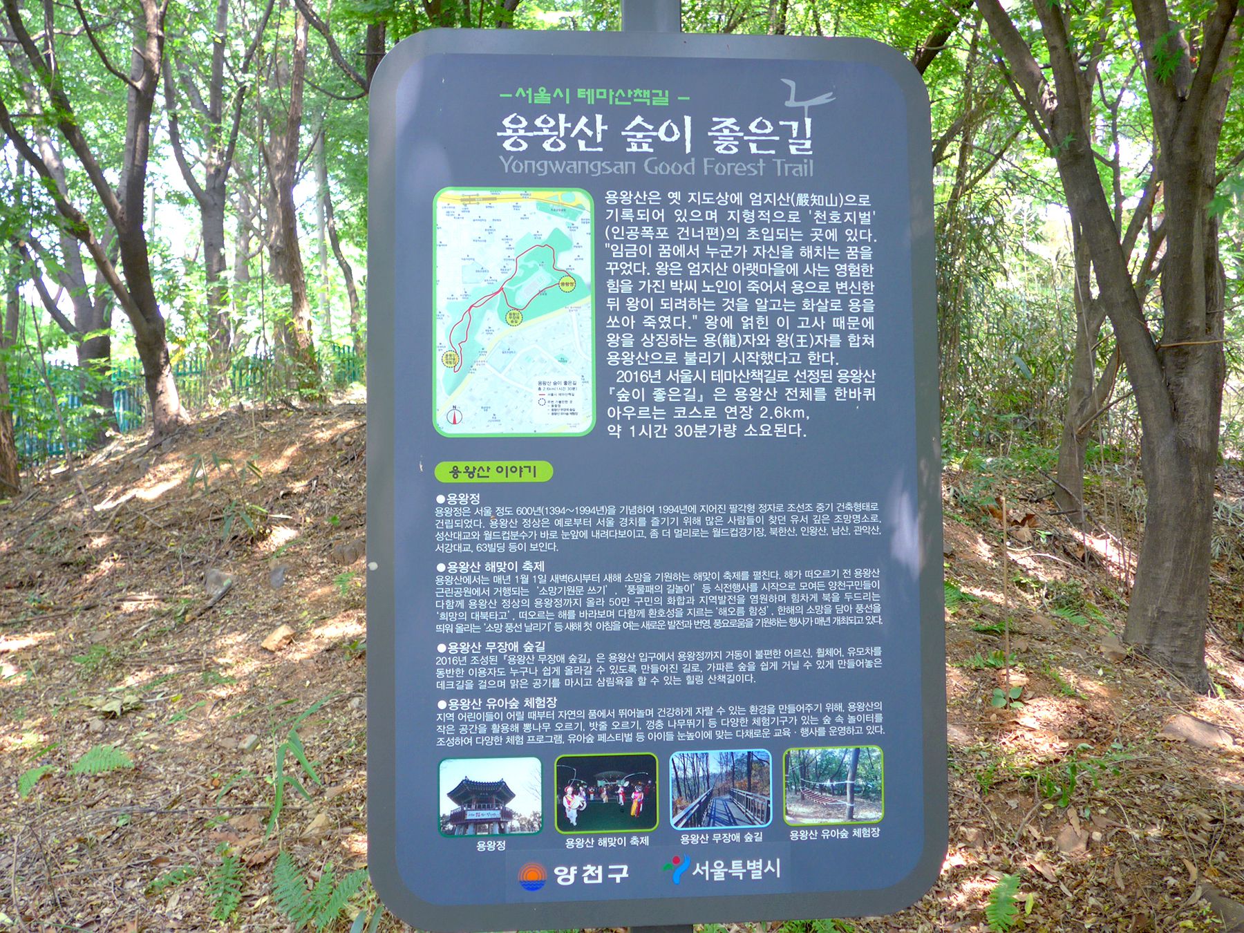 특히 특별하게 구비되어 있는 '용왕산 숲이 좋은길'은 서울시 테마산책길로 선정된 곳으로