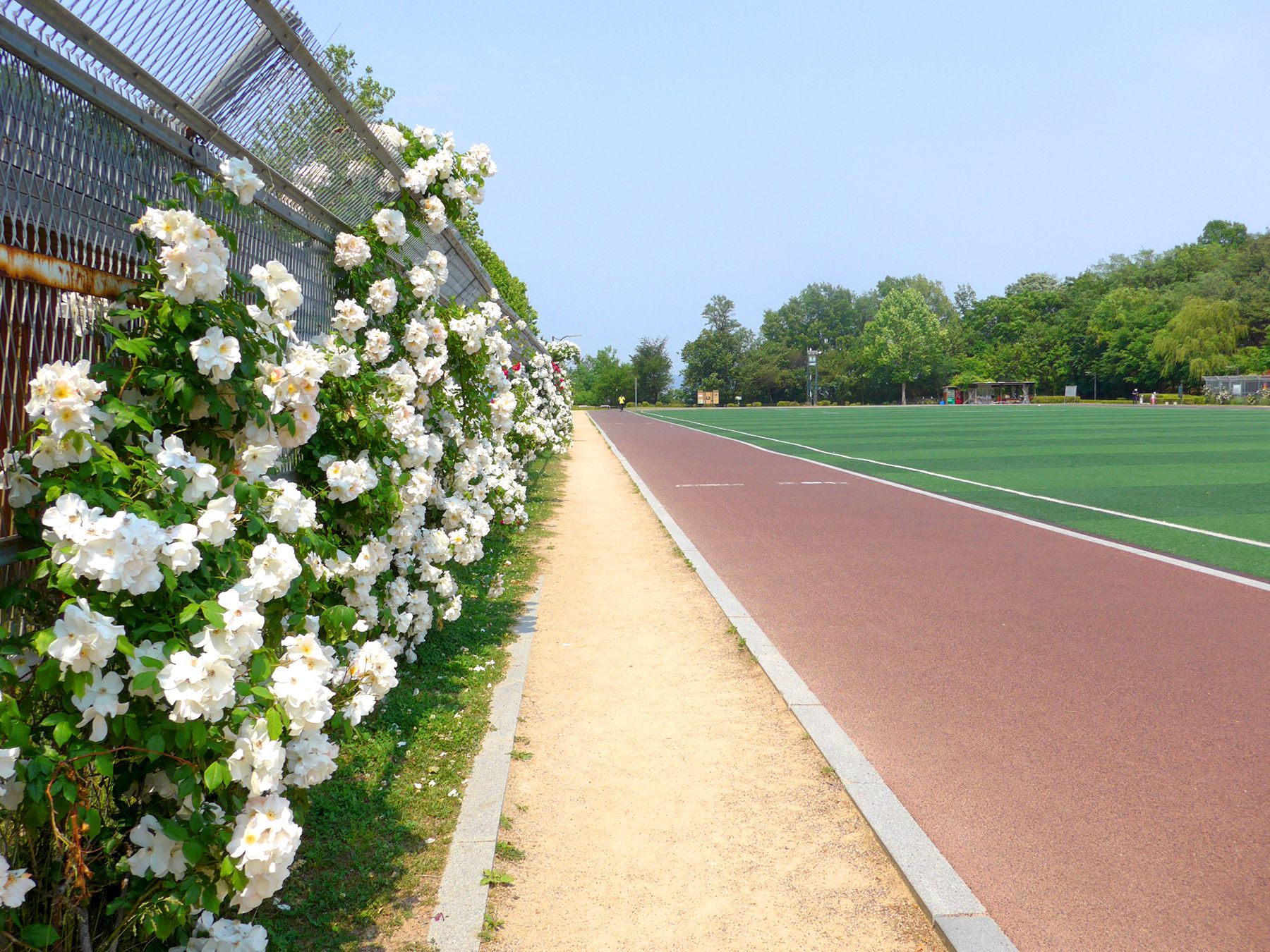 또한, 우레탄 트랙이 둘러쌓여 있어 발에 무리없는 가벼운 산책이나 조깅을 즐길 수도 있답니다^^