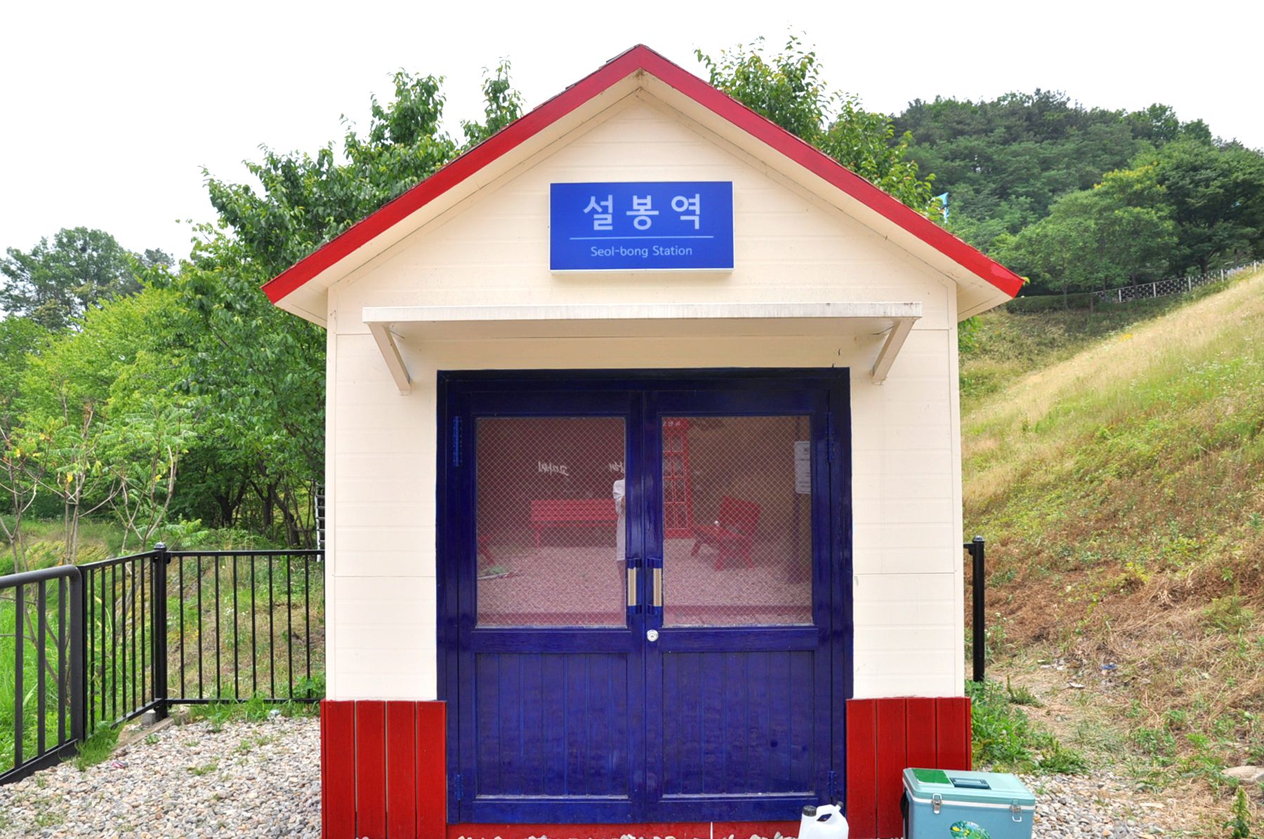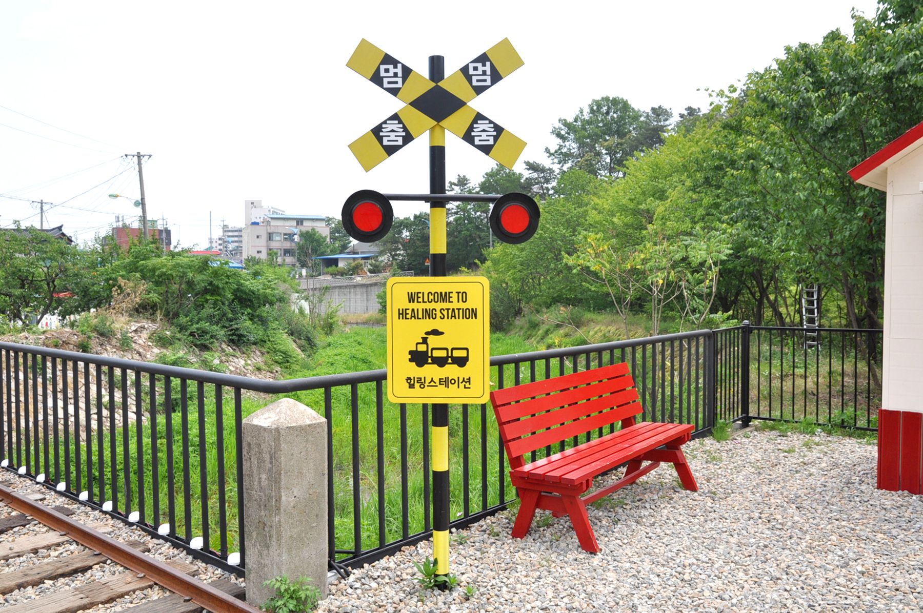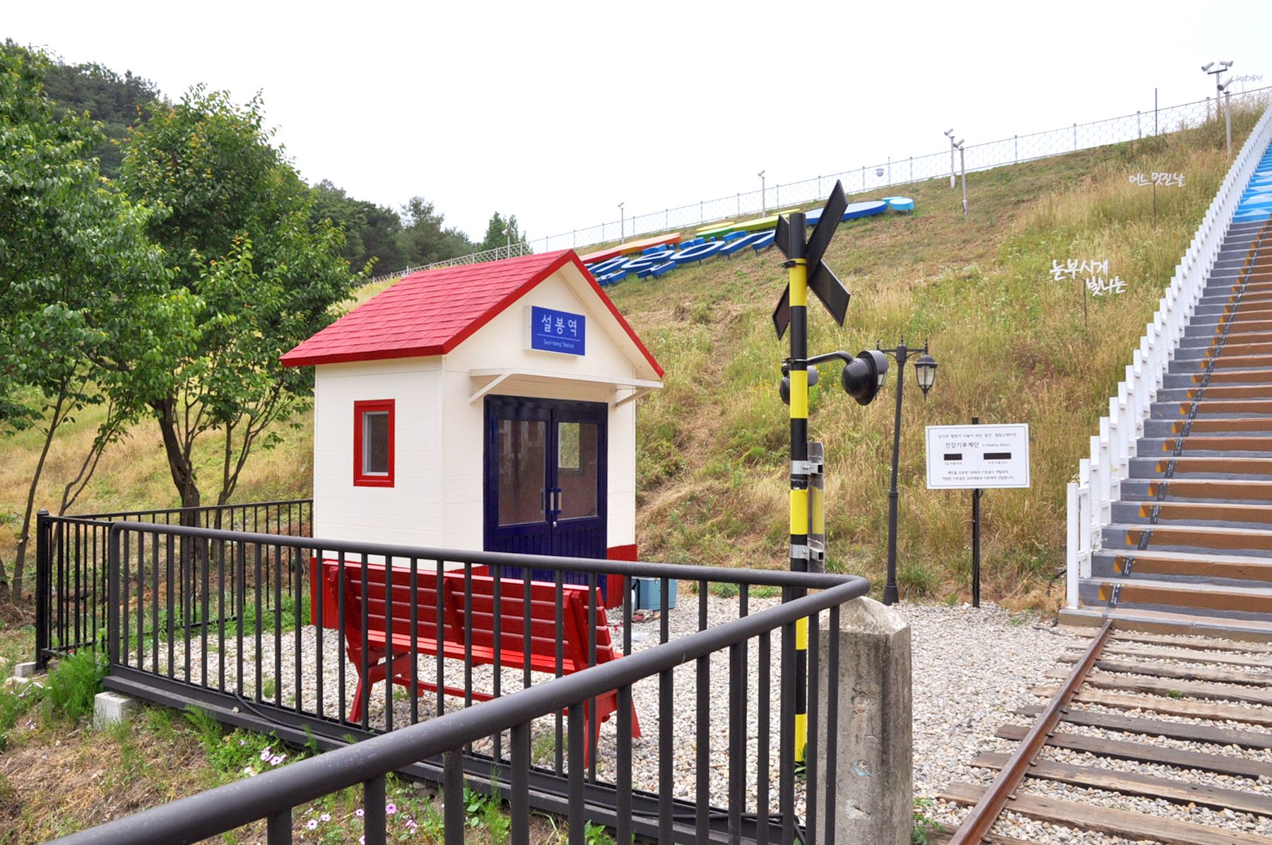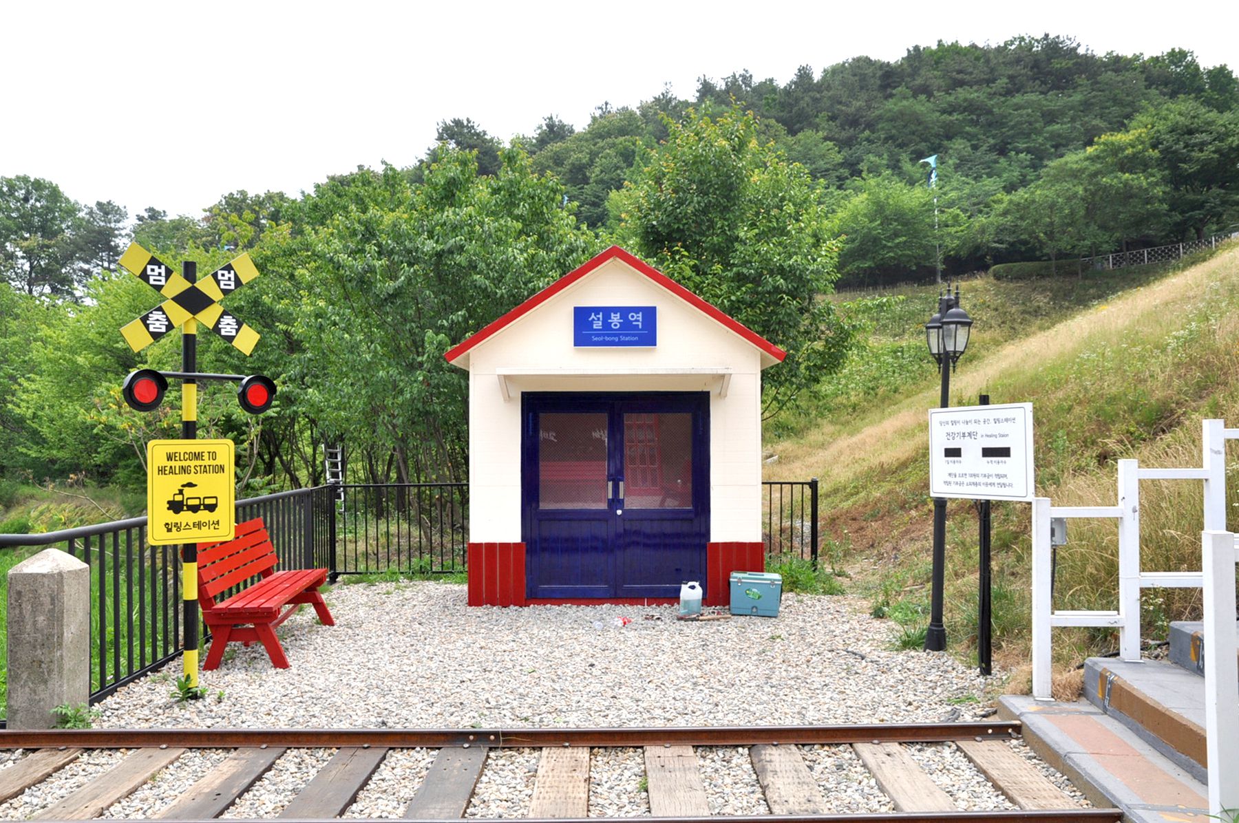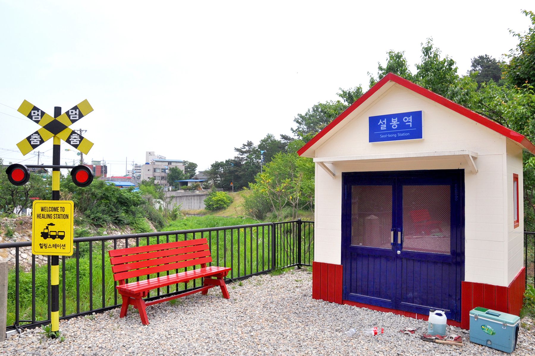 선로를 마주한 반대편에 설봉역이 자리해있으며, 붉은색의 전화부스, 의자가 함께 마련되어 있어 지나가는 사람들의 예쁜 포토존이 되어주고 있습니다.