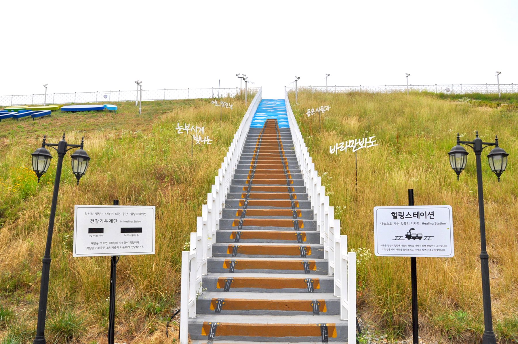 힐링스테이션의 또 다른 포토존인 긴 계단에는 '바라만봐도, 눈부시게 빛나는, 좋은사람과 ~' 라는 문구가 있습니다.