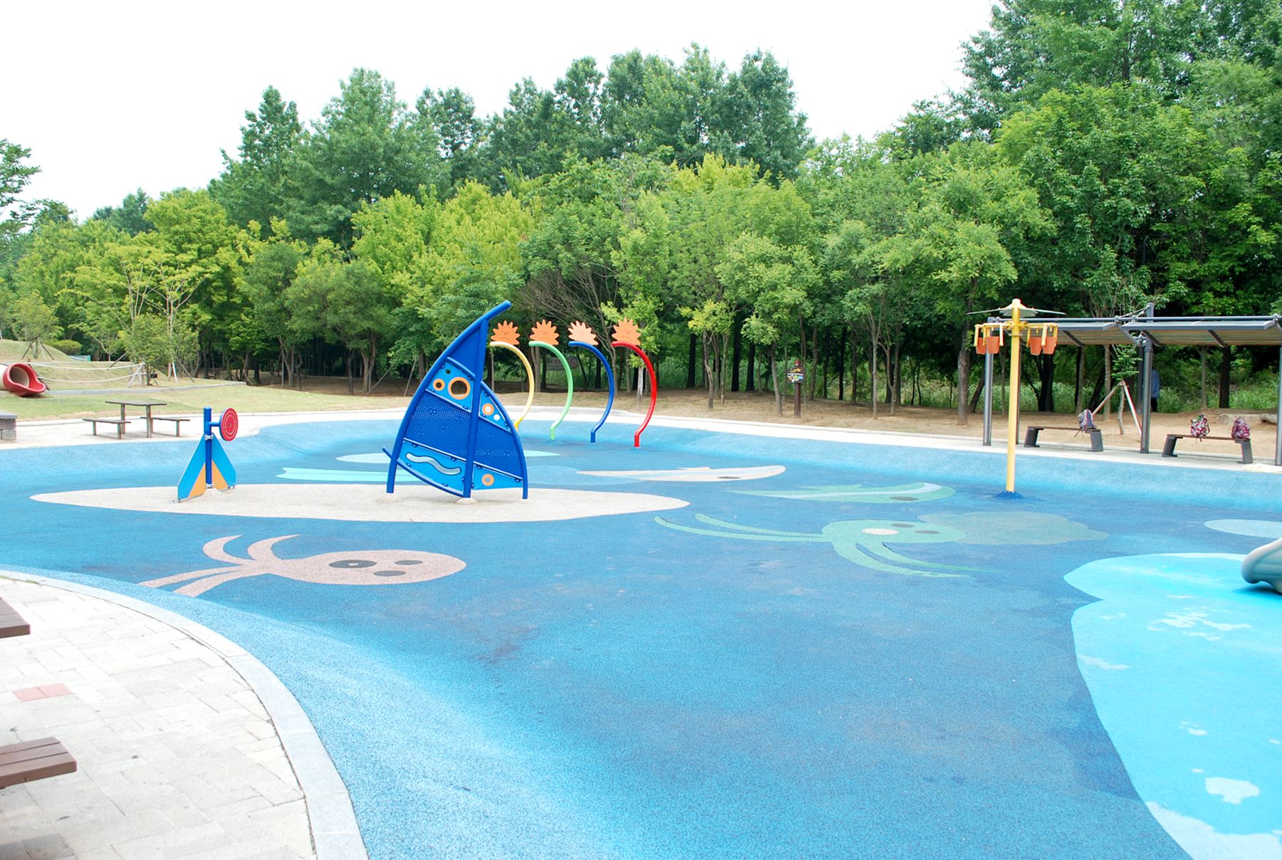 깊이 20cm의 물놀이장은 고무탄성 바닥으로 만들어져 있어 어린 아이들의 부상을 최소화시키도록 설계되어 있고