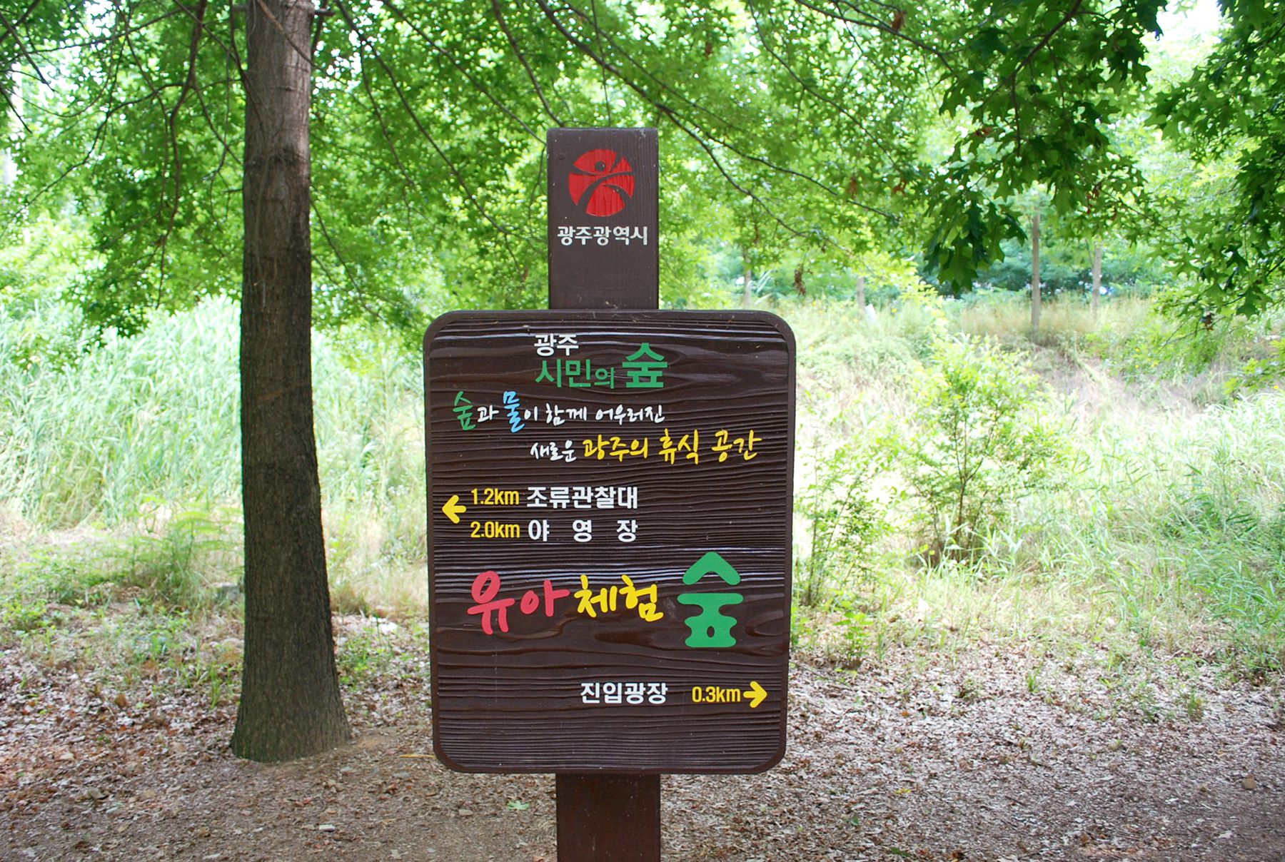 광주 시민의숲은 잘 포장된 산책로와 함께 편의시설이 잘 갖춰져 있습니다.
