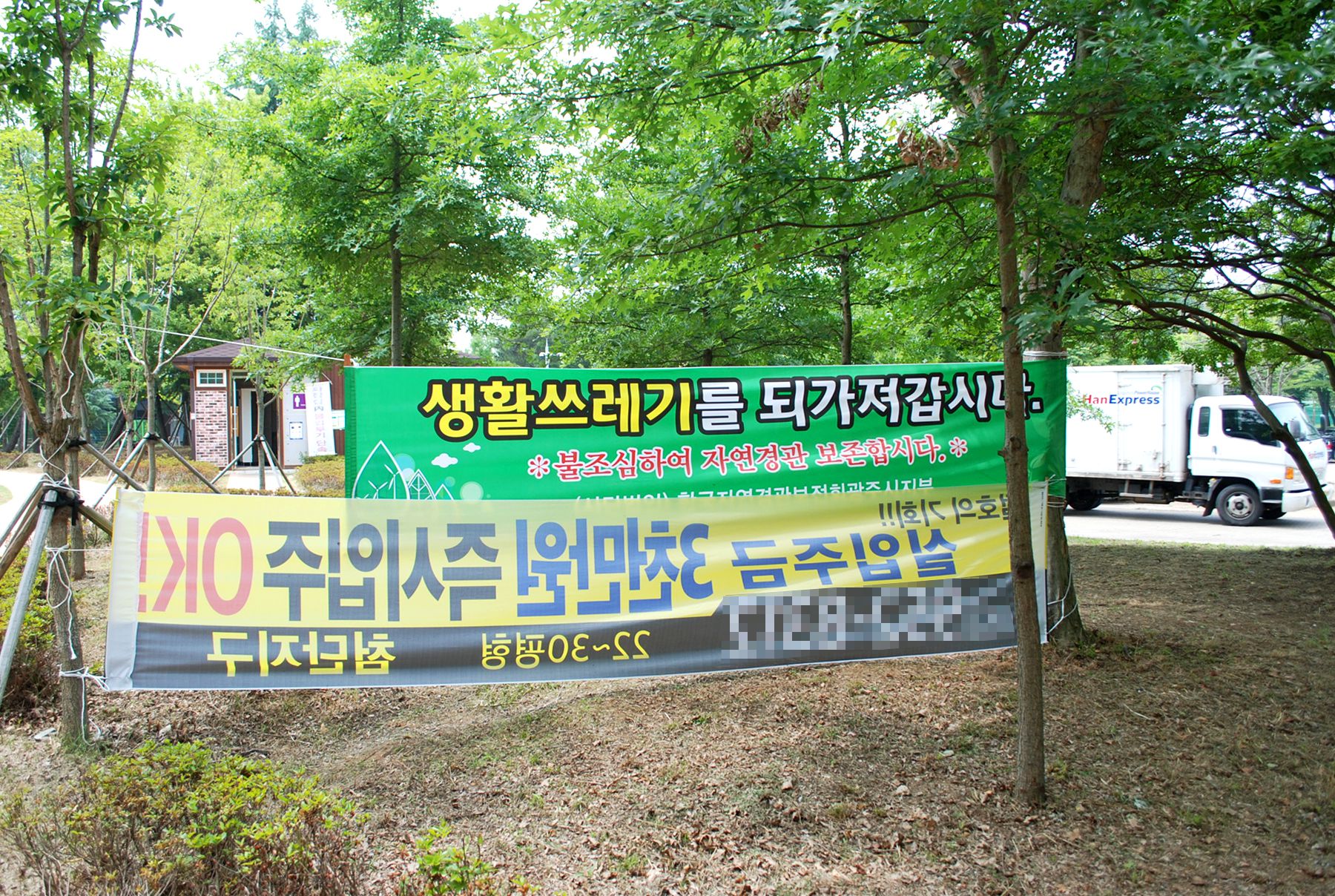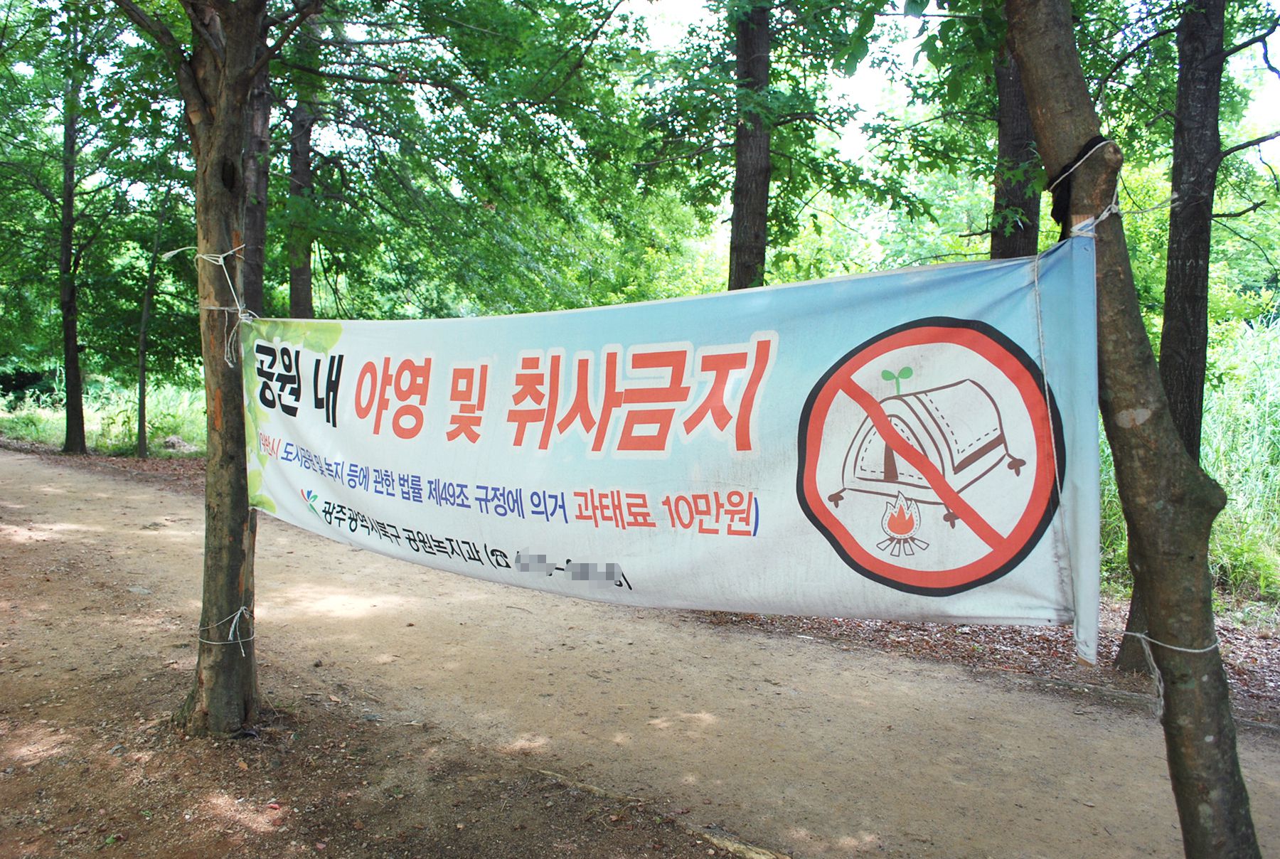 광주시민의숲 안에는 안내도와 유의사항 플랜카드가 곳곳에 배치되어 있으며,