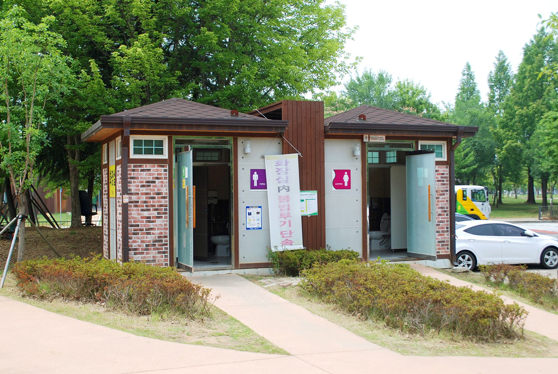 화장실과 넉넉한 주차공간은 광주 시민의숲의 자랑중 하나인데요, 구역마다 위치한 주차장은 무료로 이용이 가능합니다.