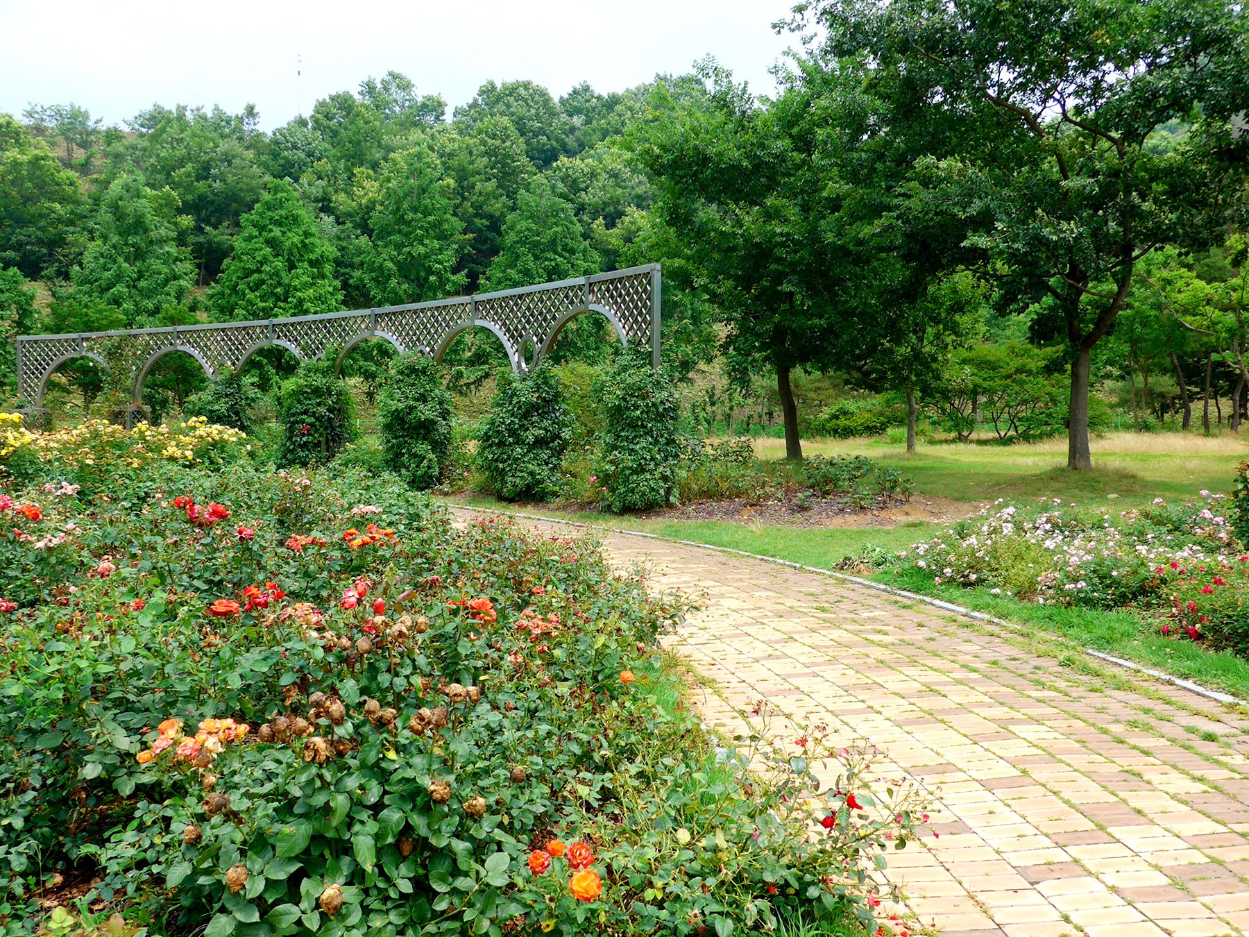 장미원은 장미터널, 트렐리스 구조물 등과 어우려져 더욱 화사한 자태를 연출하고 있으며,