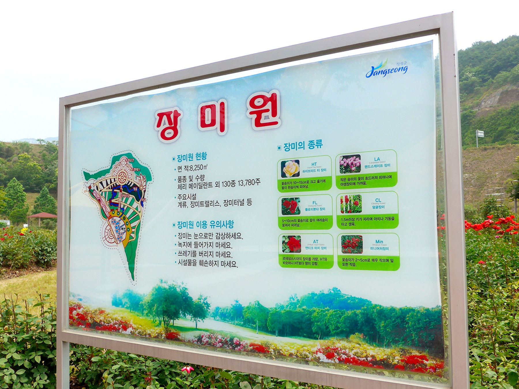 많은 사람들이 방문하는만큼 장미공원 안을 자세히 둘러볼 수 있도록 안내판이 마련되어 있으며