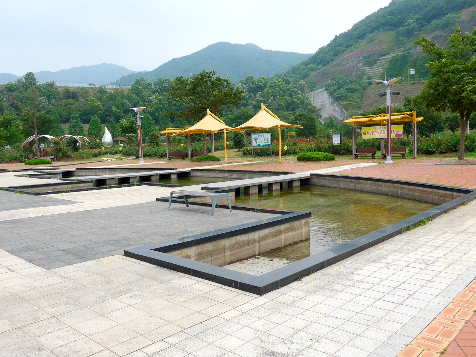 장미공원에서 빼놓을 수 없는 장소인 벽천폭포는 평림댐 수자원을 활용한 벽식폭포로 꾸며져있어