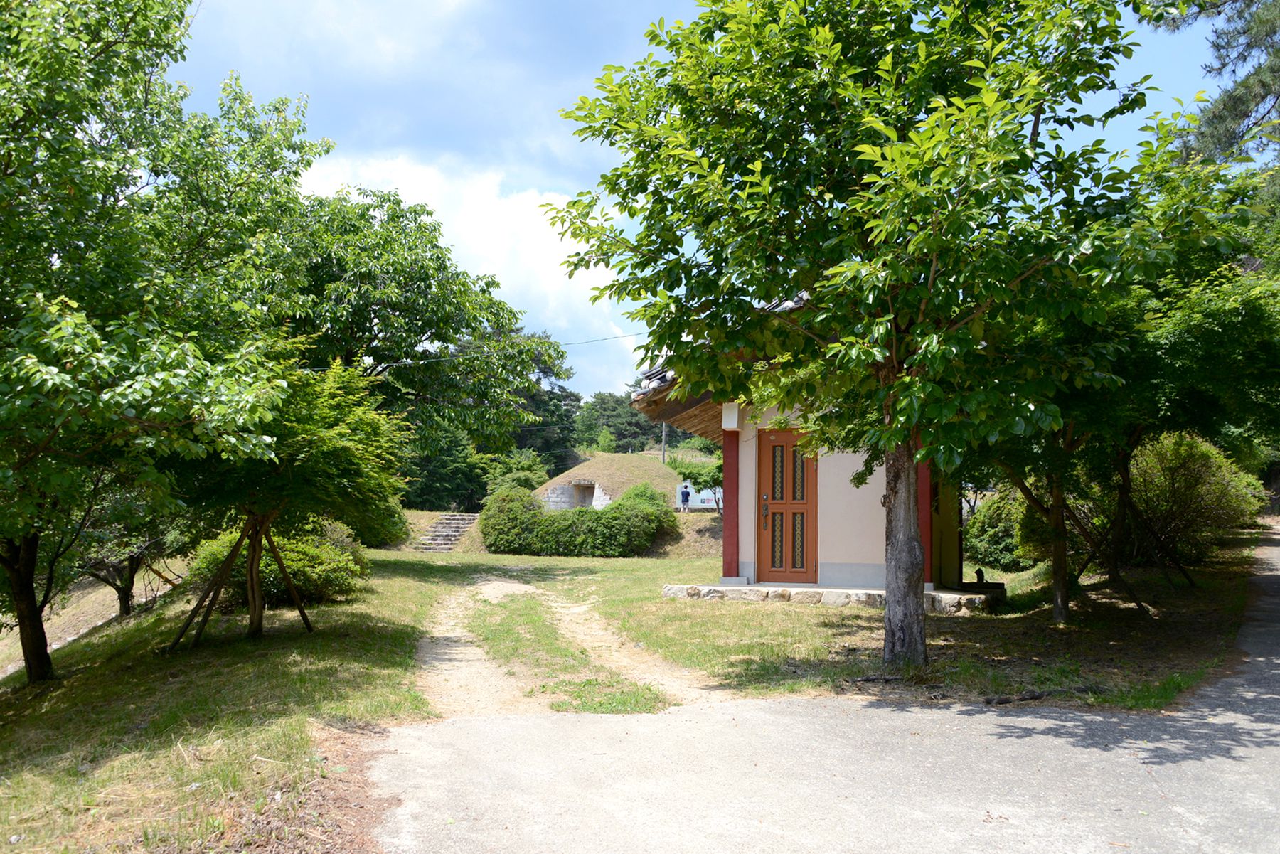너비 0.7m, 길이 1m 정도 되는 비교적 짧은 널길이 널방 남벽의 서단에 편재해 붙은 좌편수형입니다.
