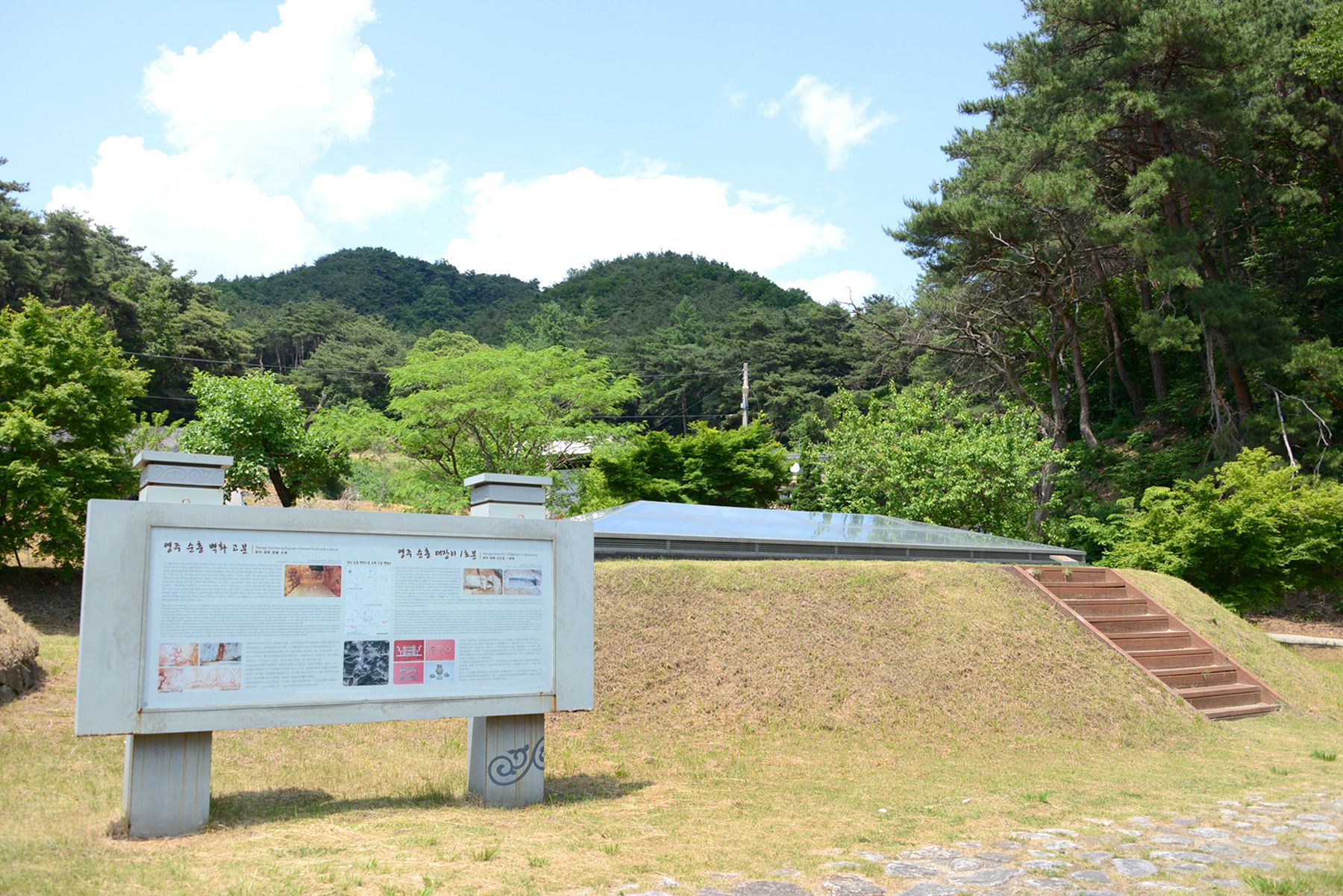 현재는 보존을 위해 폐쇄하고, 산 아래 쪽 순흥 읍내리 벽화고분의 모형관을 설치해놓았습니다.
