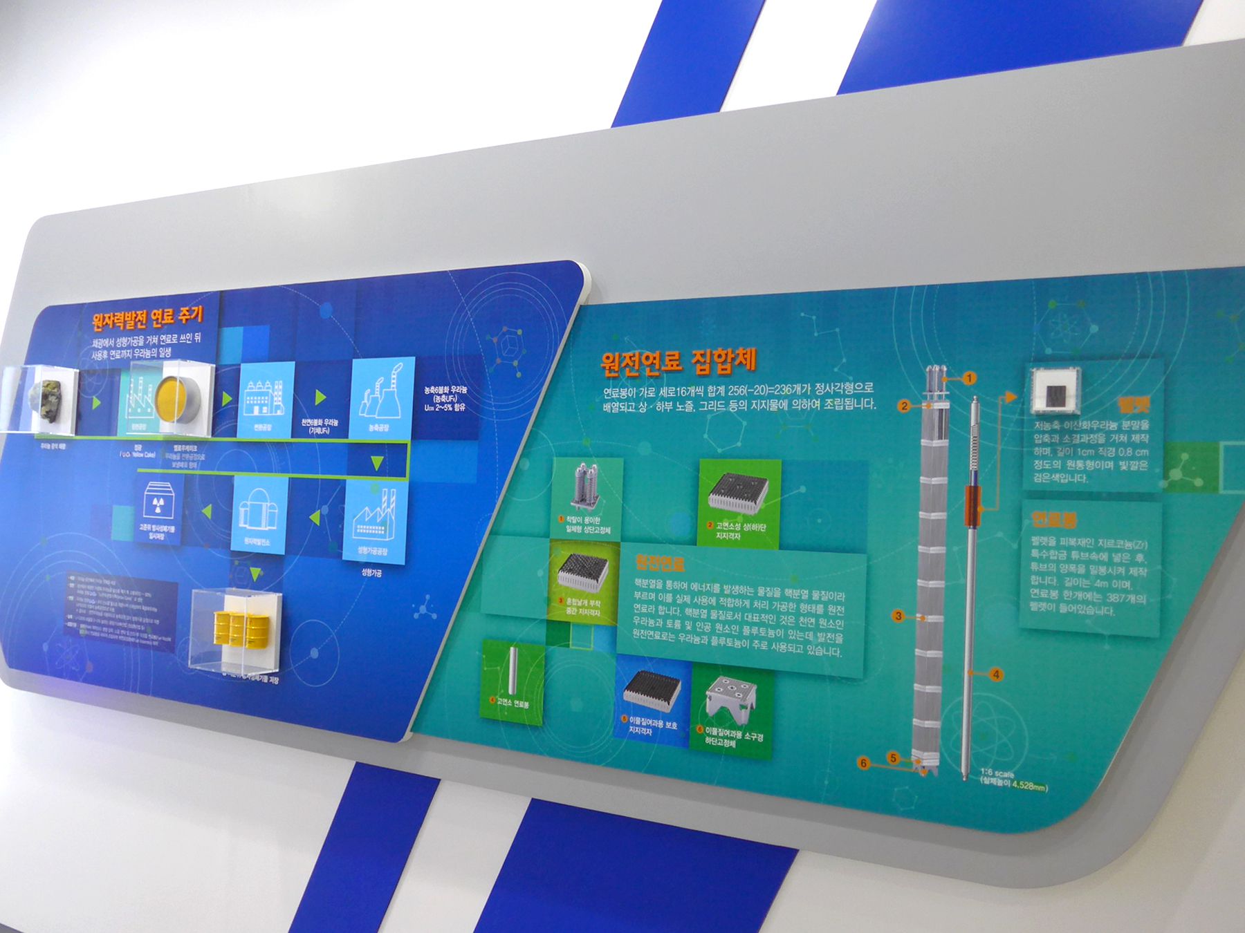 이해를 돕기 위해 연료집합체, 격납건물 축소 모형들을 전시하고 있습니다.