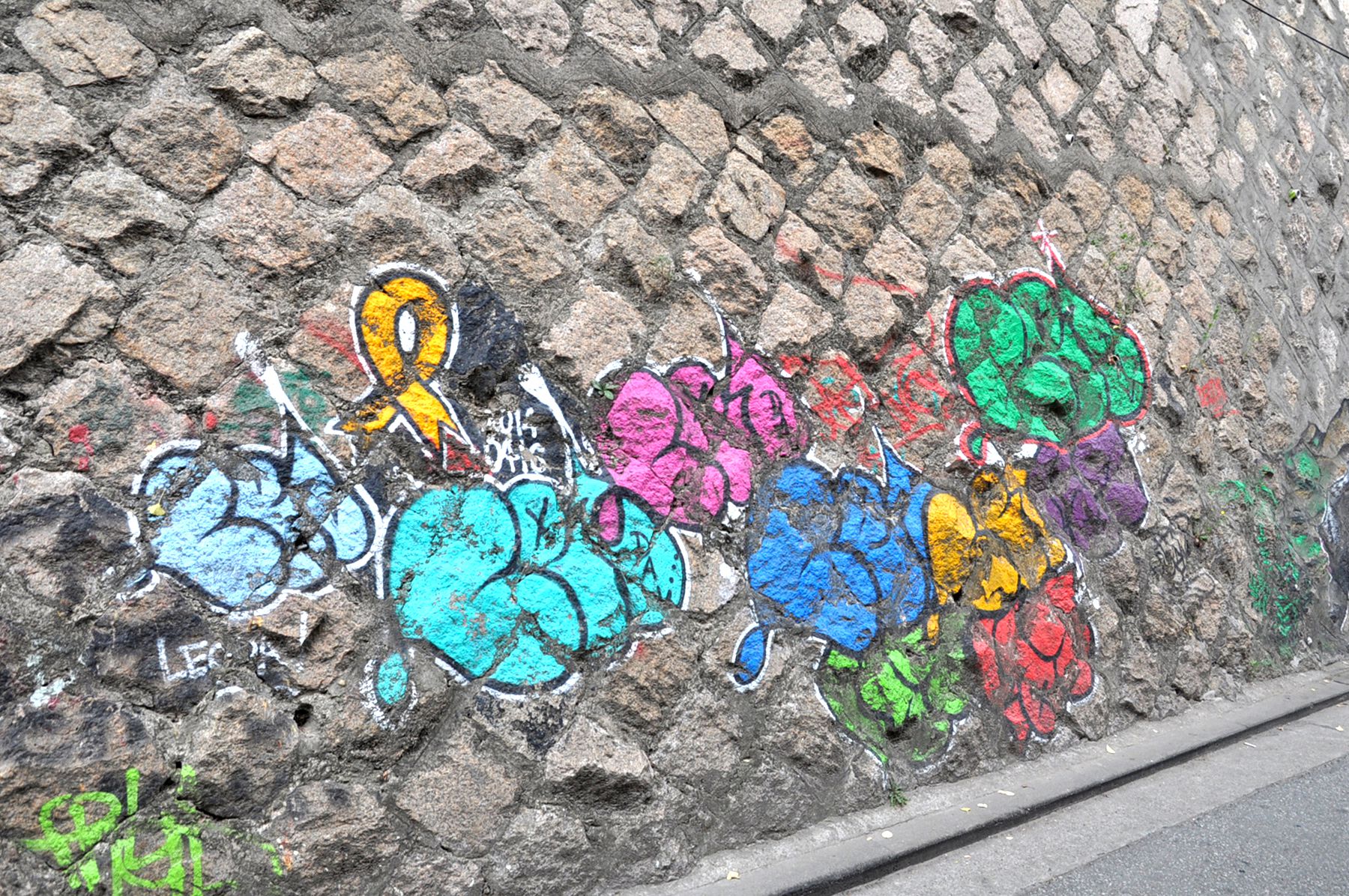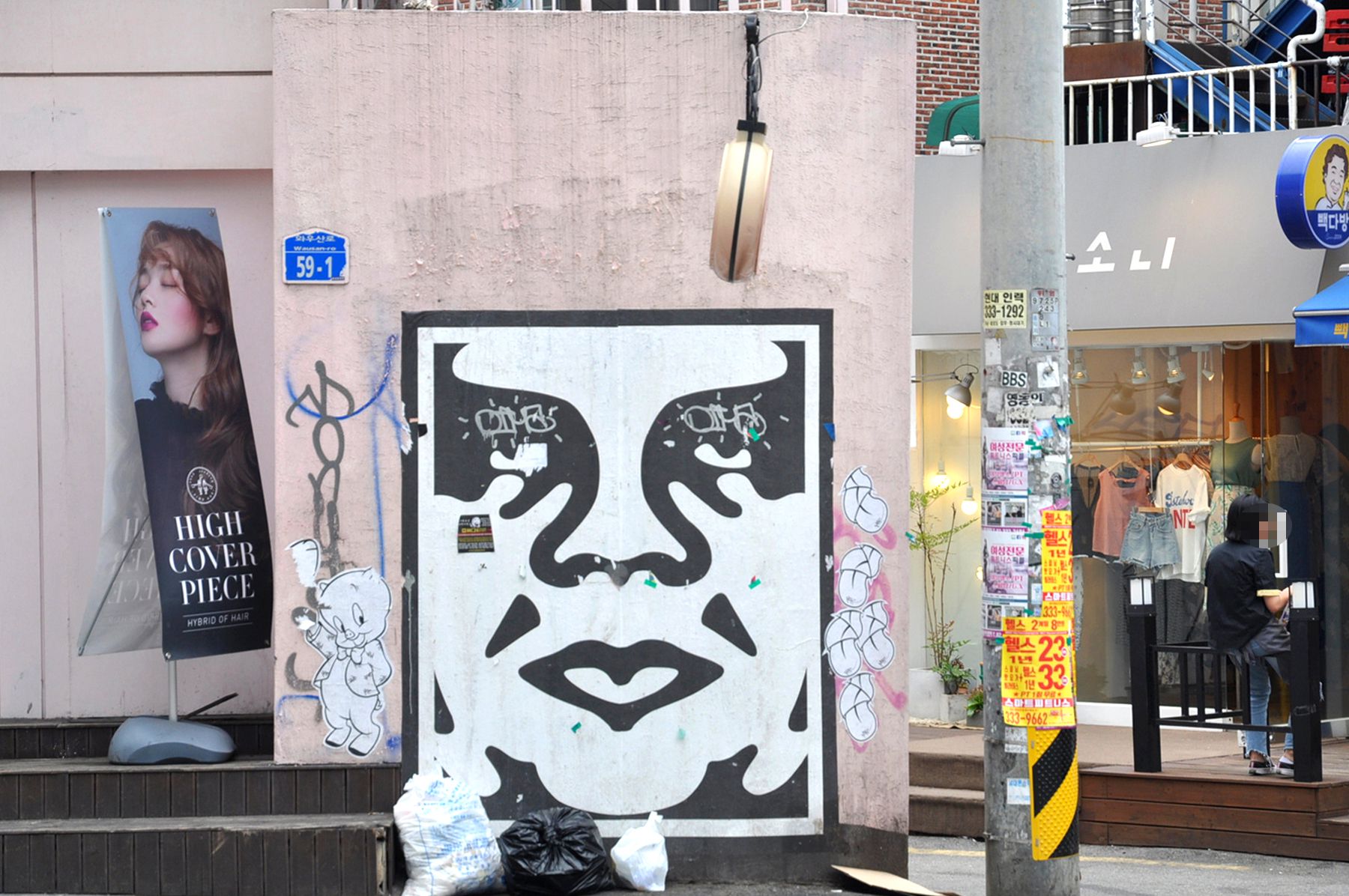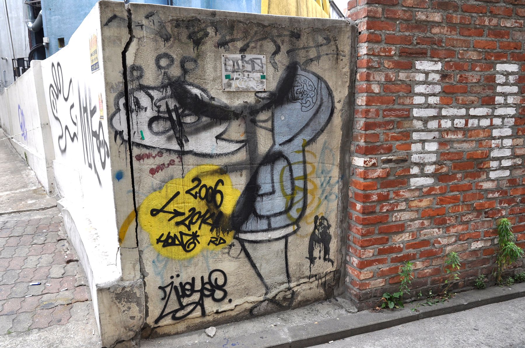 홍대벽화의 전유물인 그래피티도 볼 수 있고, 낙서처럼 보이는 그림 등 다양한 주제를 가진 그림들을 만나볼 수 있습니다.