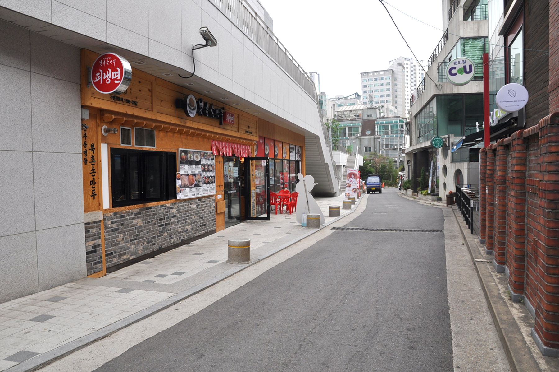 홍대 정문 우측 조그만 샛길을 이용하는 방법이 있는데요,