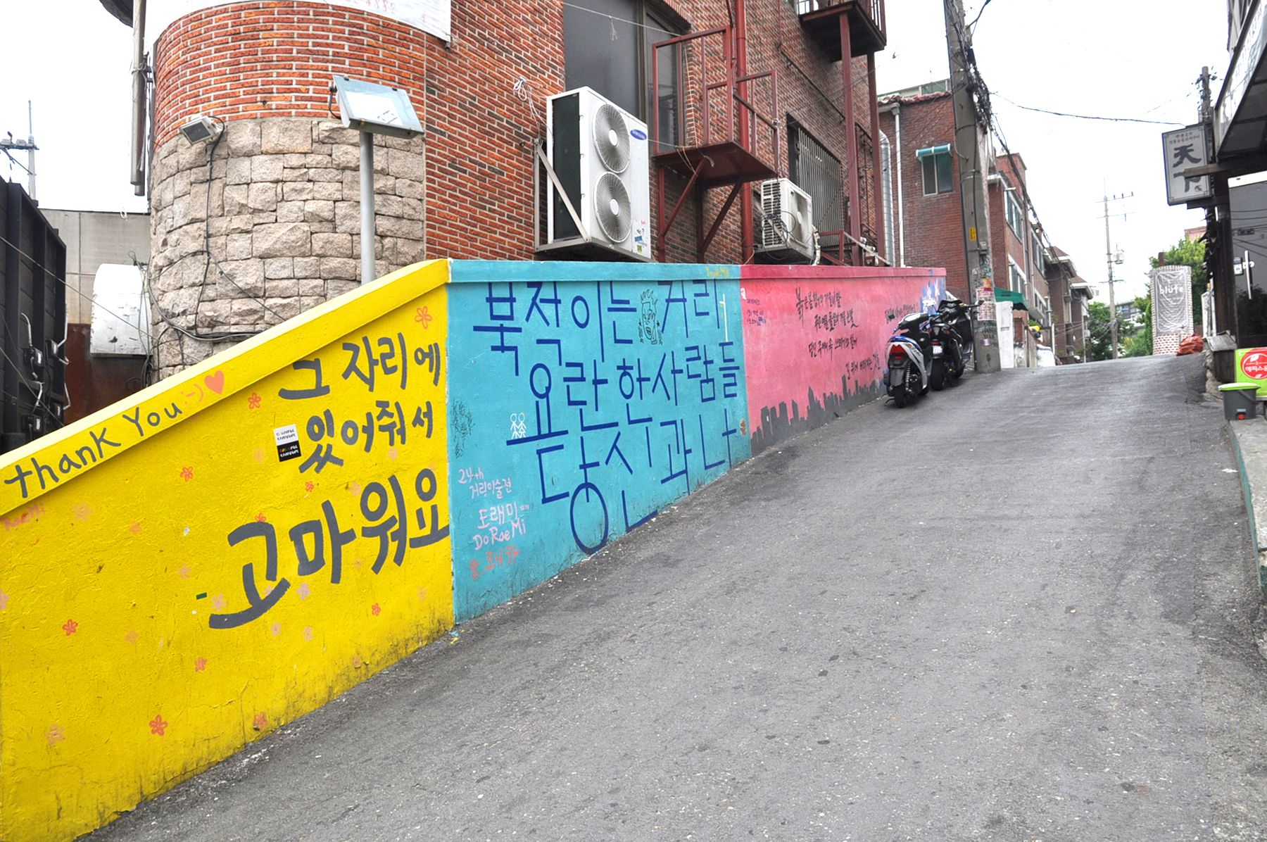 피카소거리는 1993년 거리미술전을 시작으로 홍익대 미대 학생들과 여러 작가들의 작업이 더해져 벽화거리가 형성되었답니다.