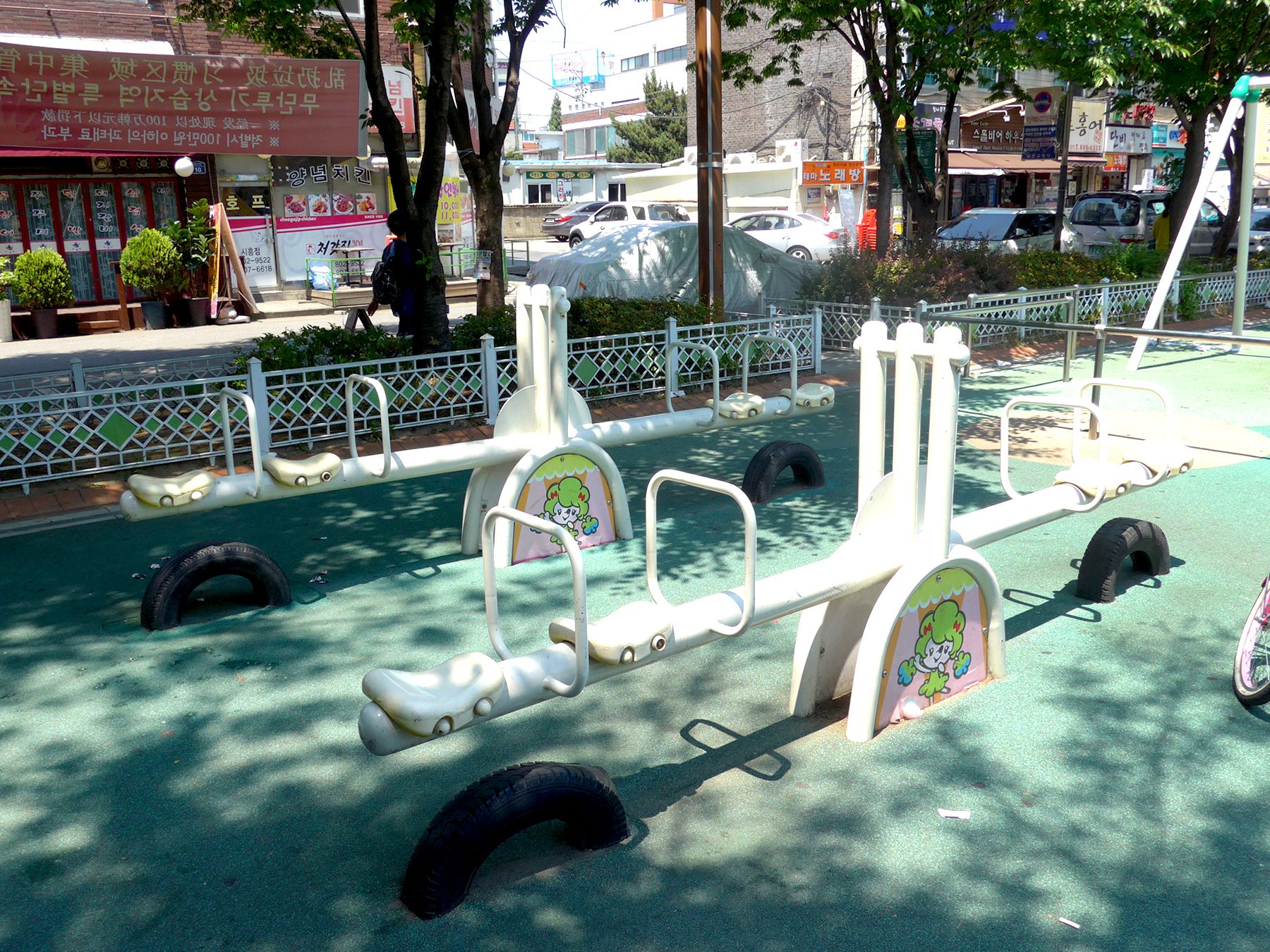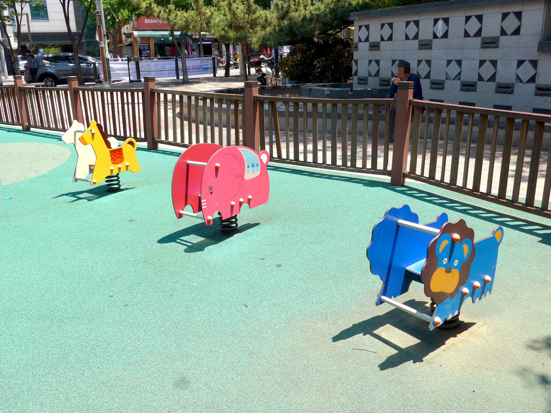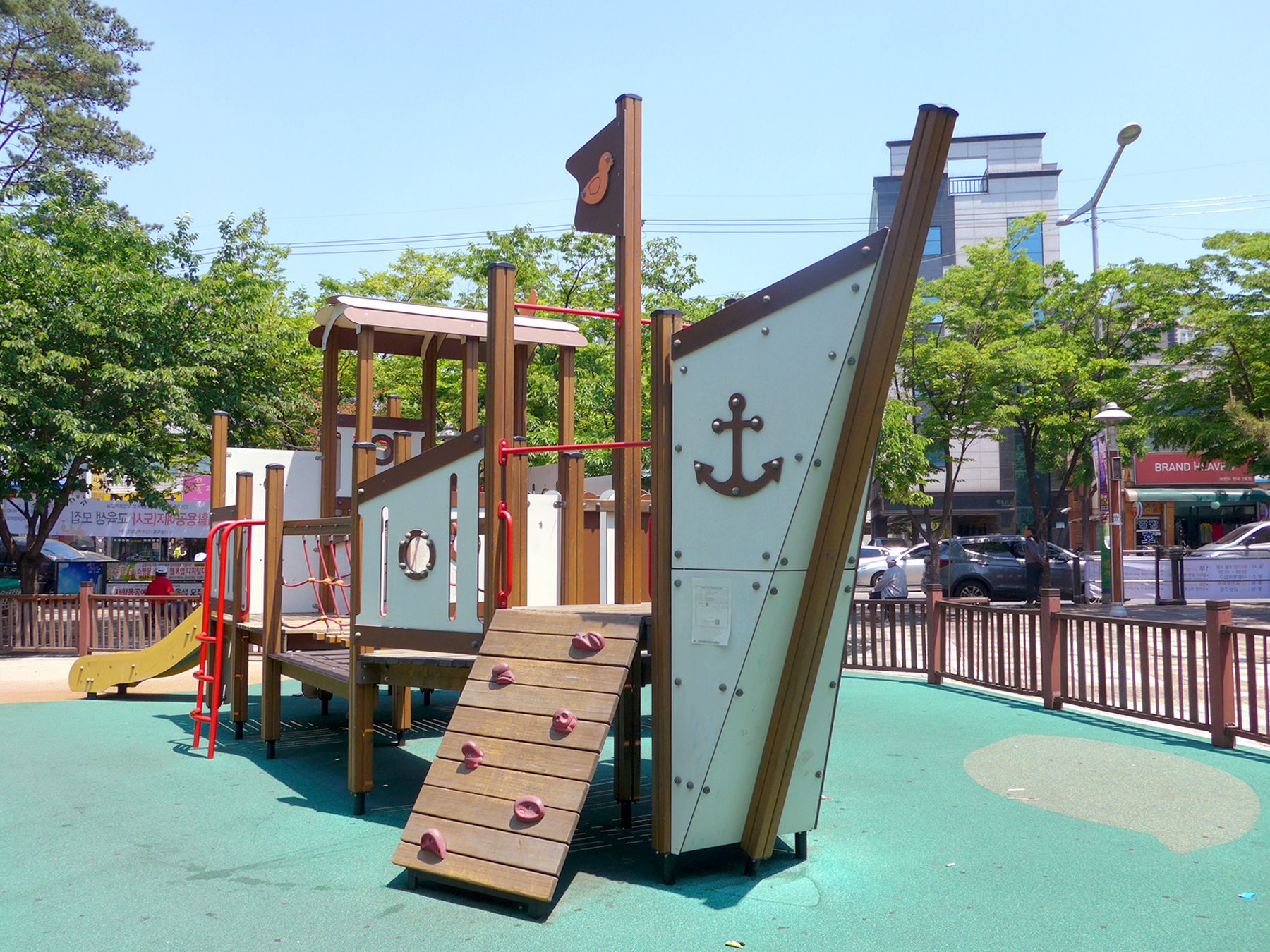금빛공원 한켠에는 배 모양의 놀이기구와 안전한 우레탄 바닥으로된 어린이놀이터가 마련되어 있습니다.