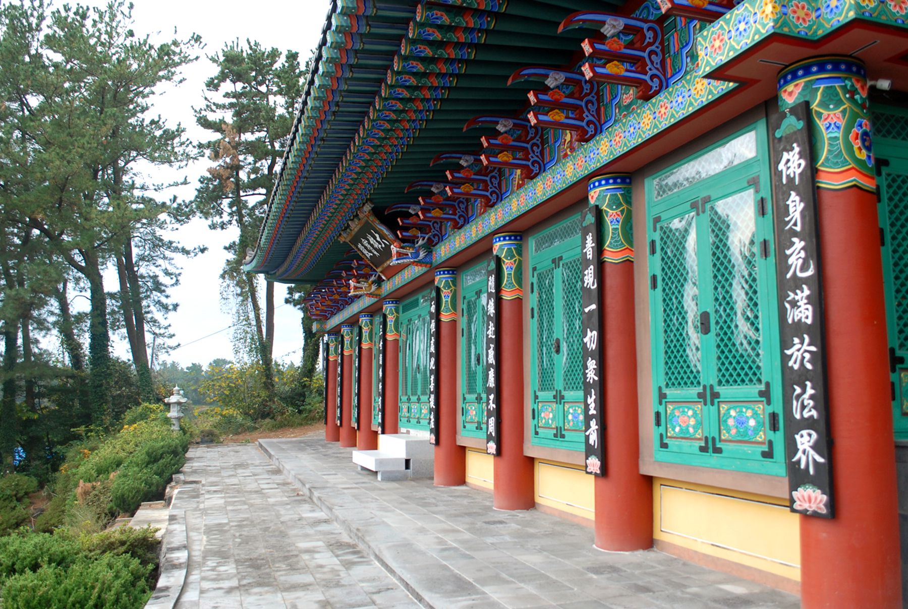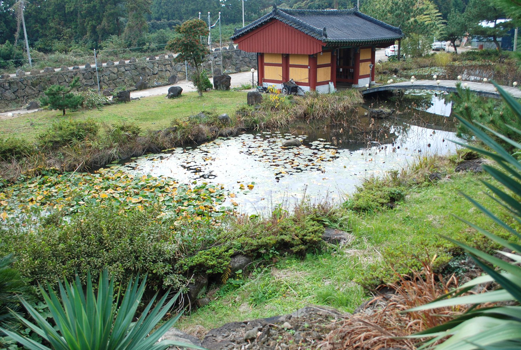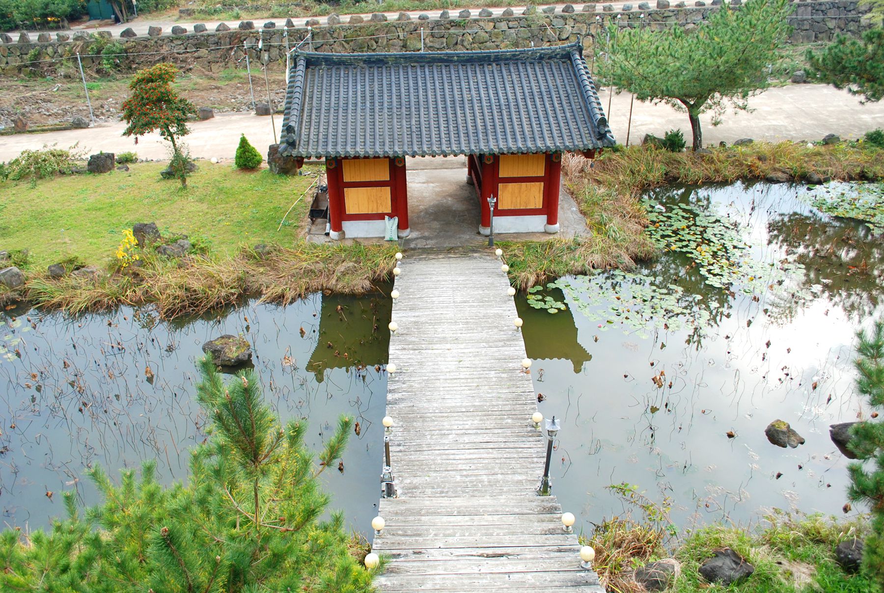 길다란 연못이 위치하고 있는 특별한 형태로 제주에서만 만나볼 수 있는 모습의 사찰입니다.