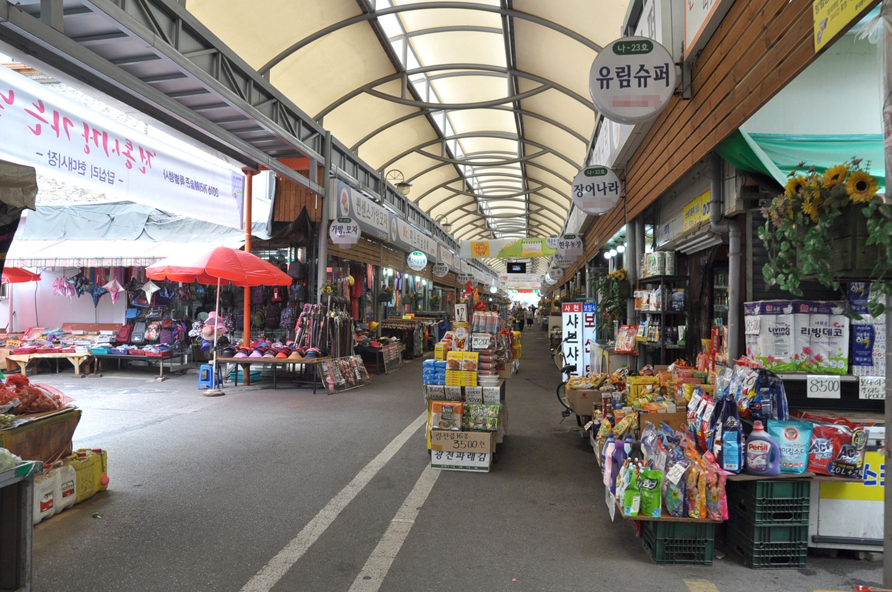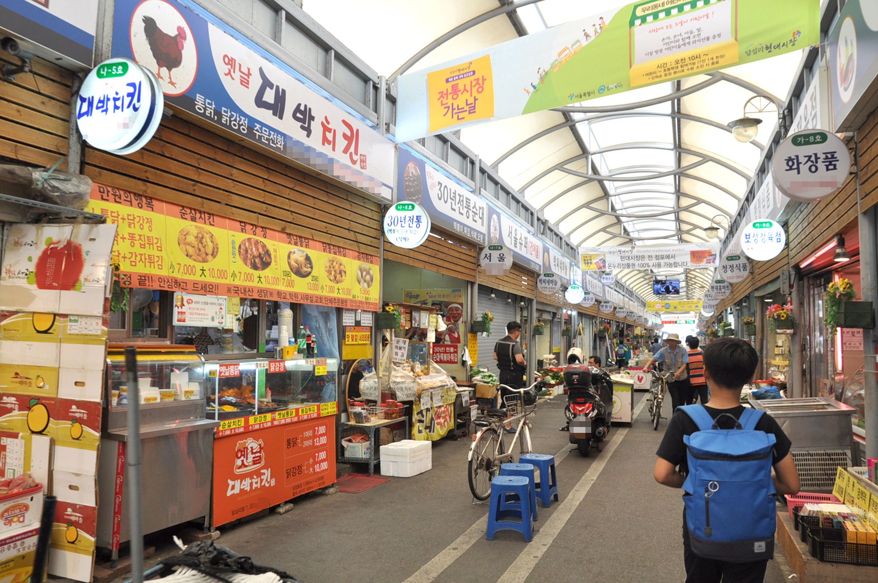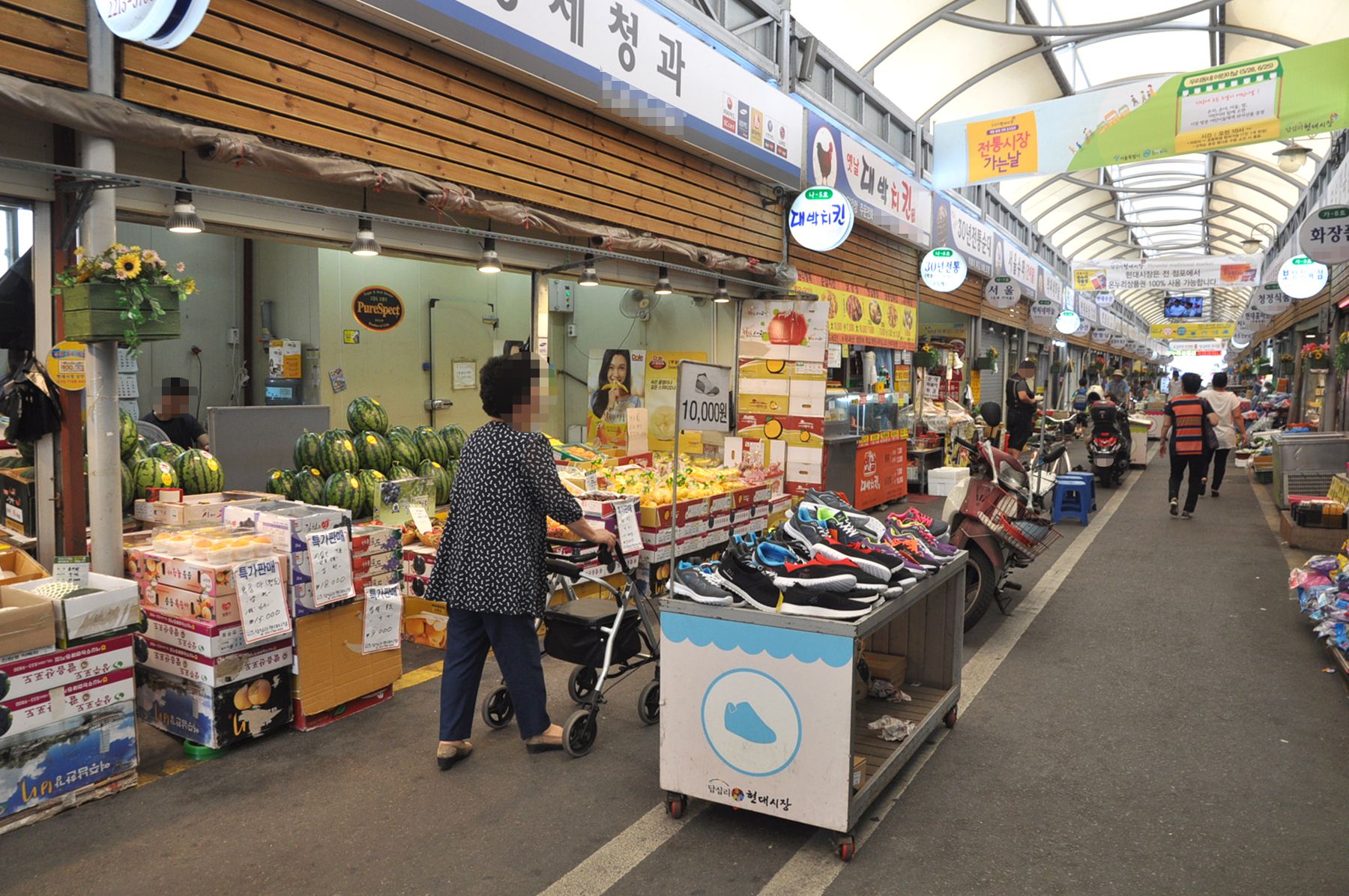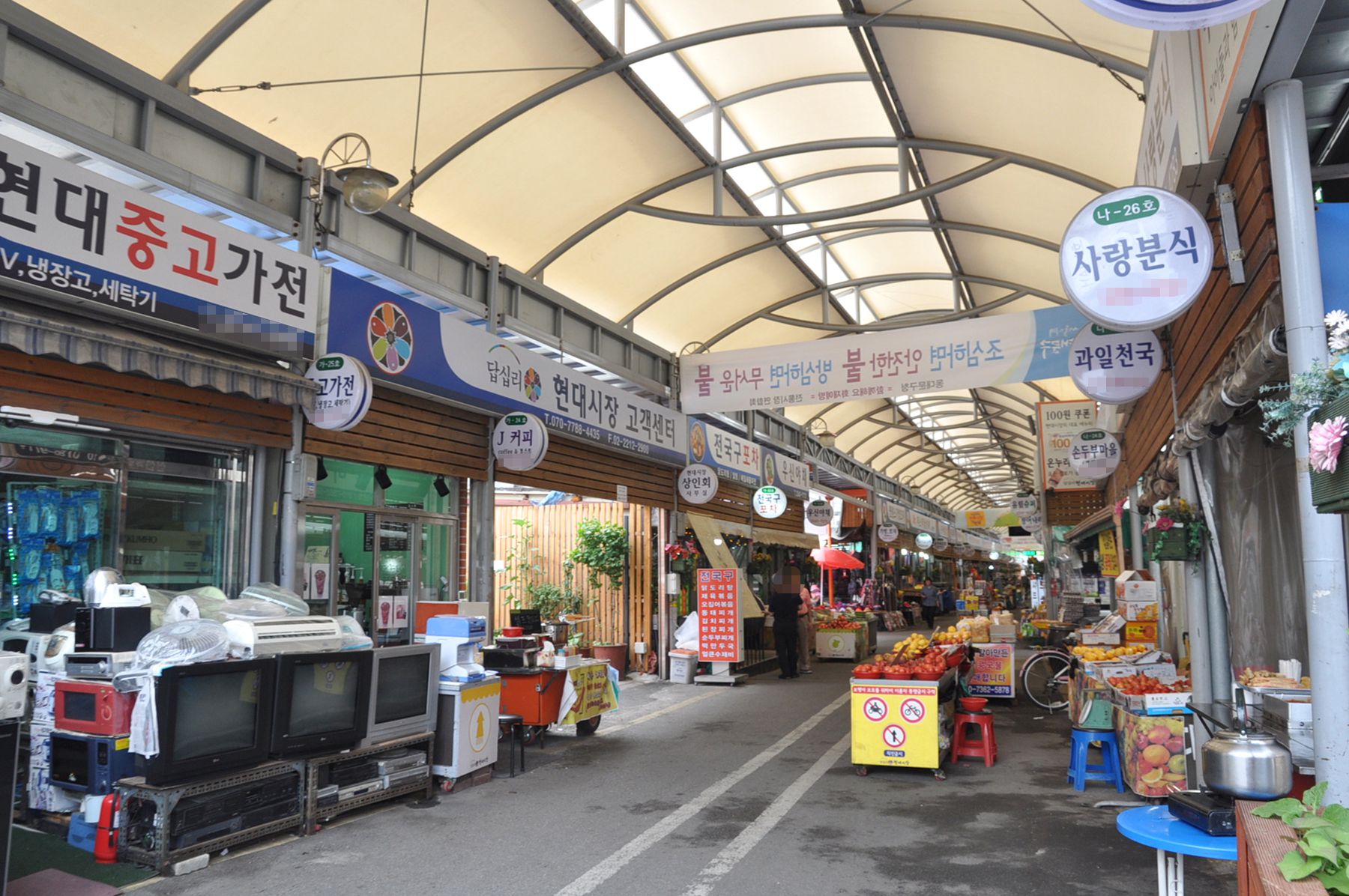 답십리현대시장은 아케이드가 설치되어 있어 비가와도 편리하게 장을 볼 수 있으며