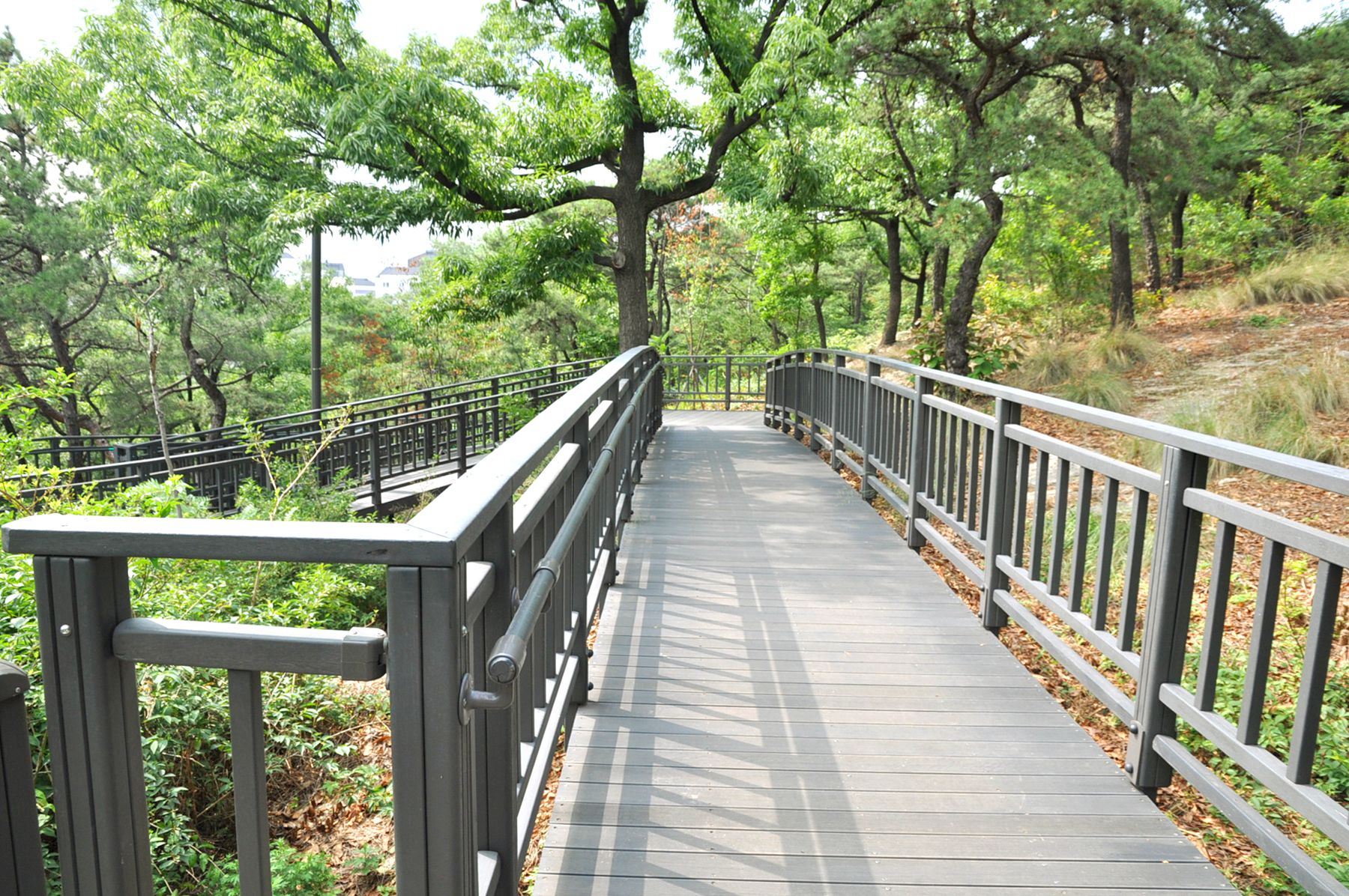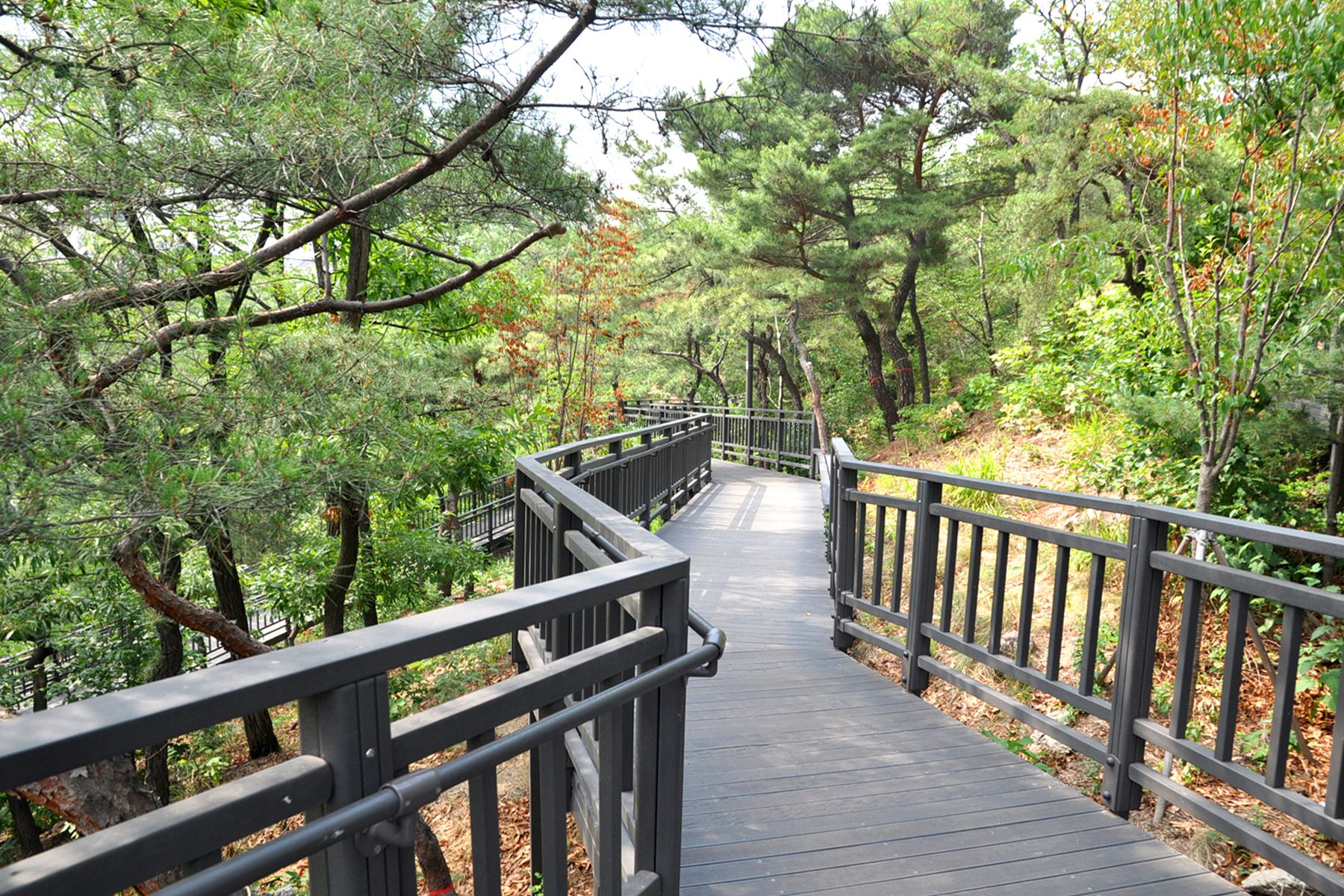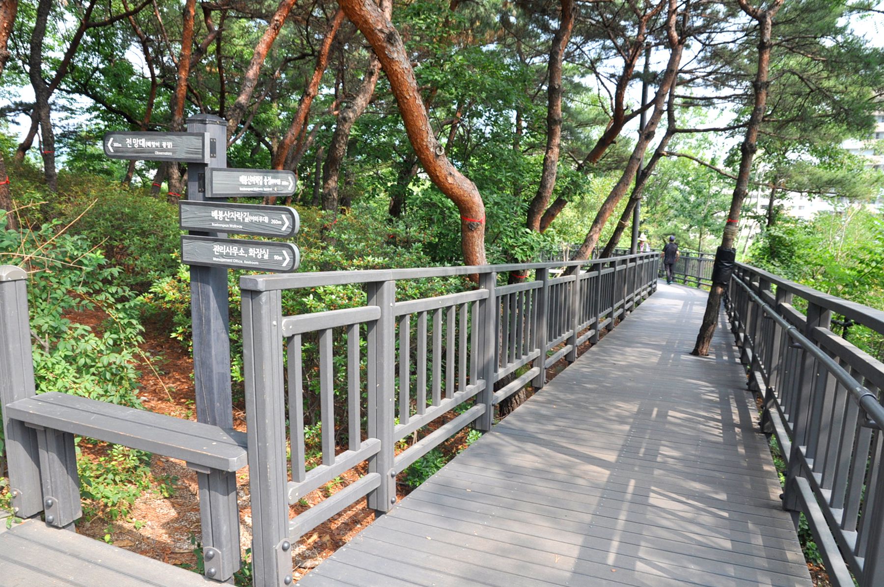 배봉산근린공원은 산책로가 안전한 나무데크로 되어있어 아이부터 어른까지 누구나 방문하기 좋습니다.