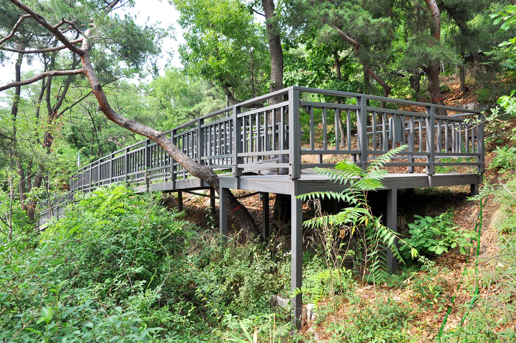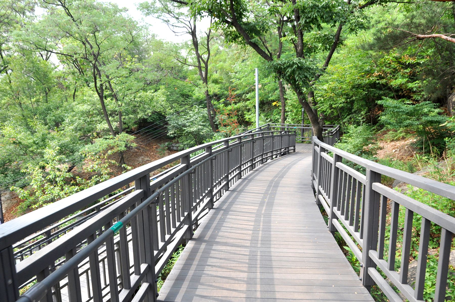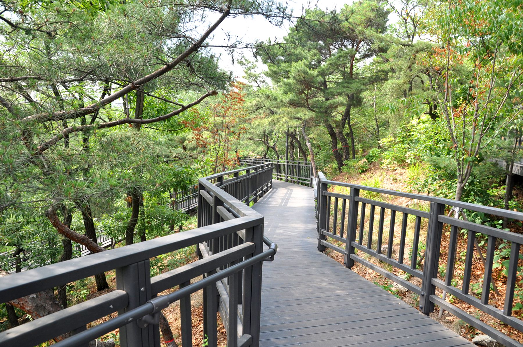 배봉산근린공원은 산책로가 안전한 나무데크로 되어있어 아이부터 어른까지 누구나 방문하기 좋습니다.