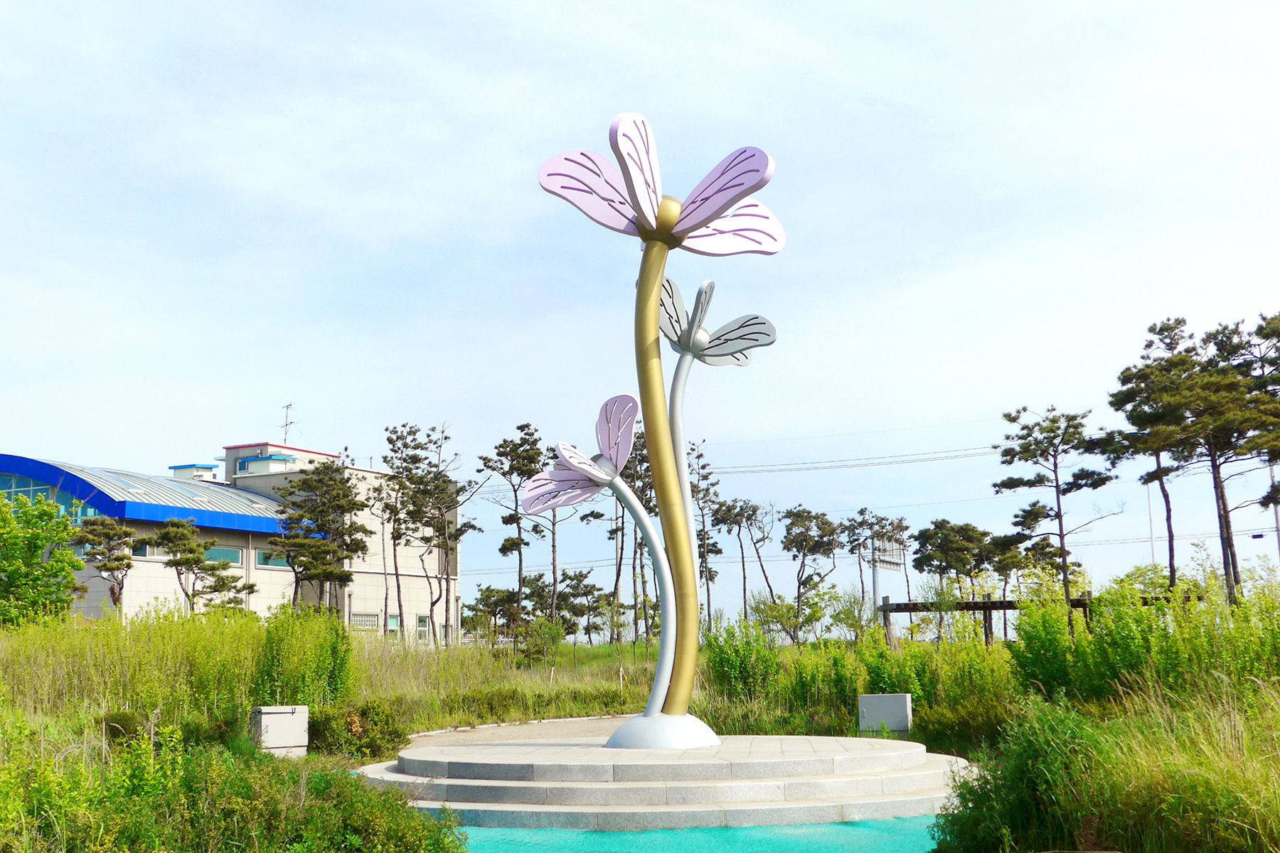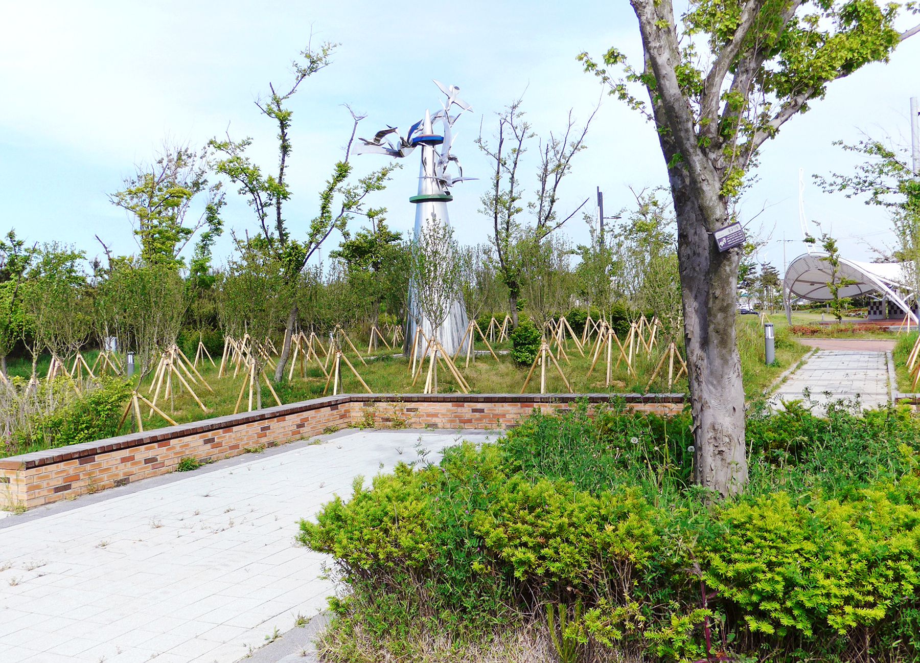 새만금비응공원의 광장 중심에는 비응도를 상징하는 ‘하늘을 향해 비상하려는 '매’의 모양을 형상화한 조형물을 만나볼 수 있는데요,