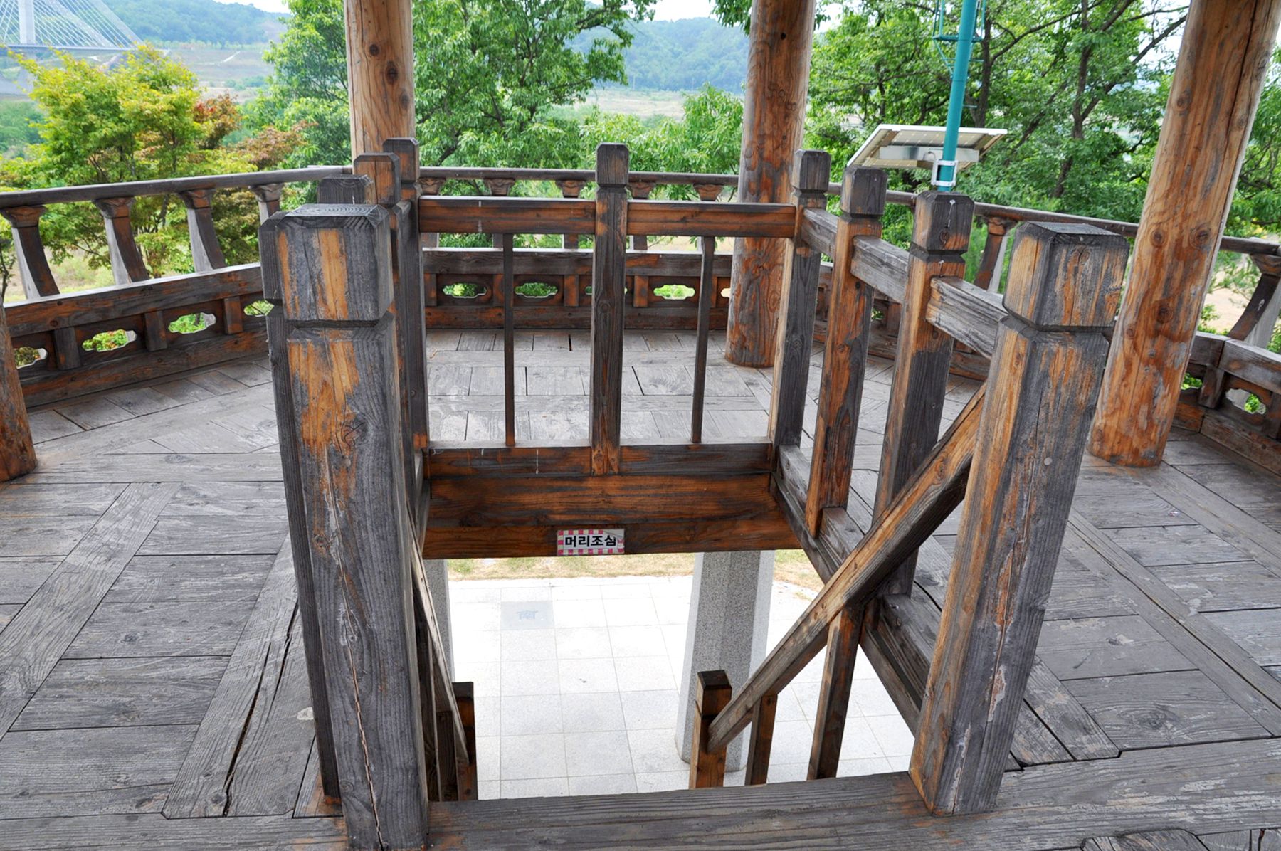 2층으로된 고풍스러운 정자을 모습의 합강정의 바닥에는 동서남북이 표시되어 있어 방향을 알아보며 주변 풍경을 즐겨볼 수 있습니다.