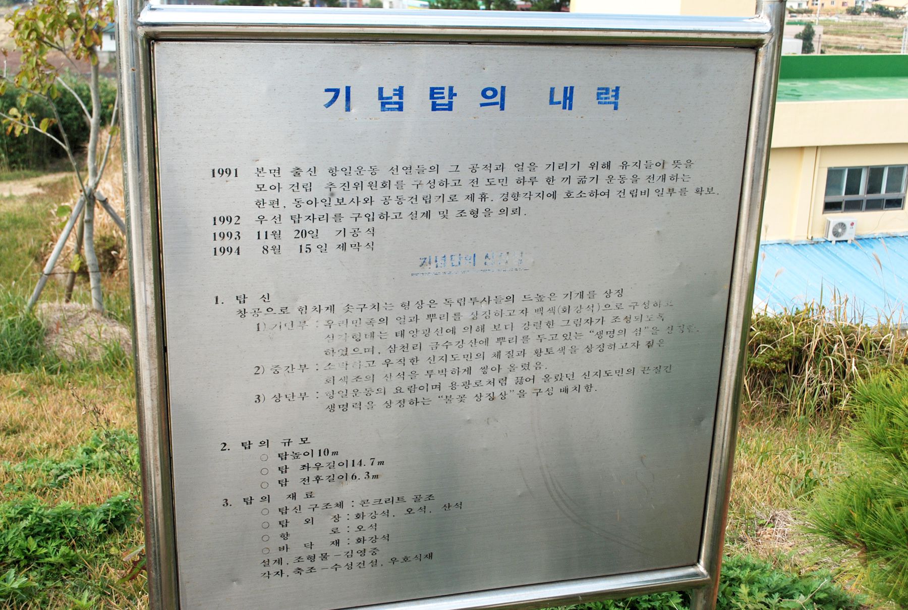 탑의 높이가 무려 10m로 1994년 8월 15일 광복절에 맞추어 제막식을 열었다고 합니다.
