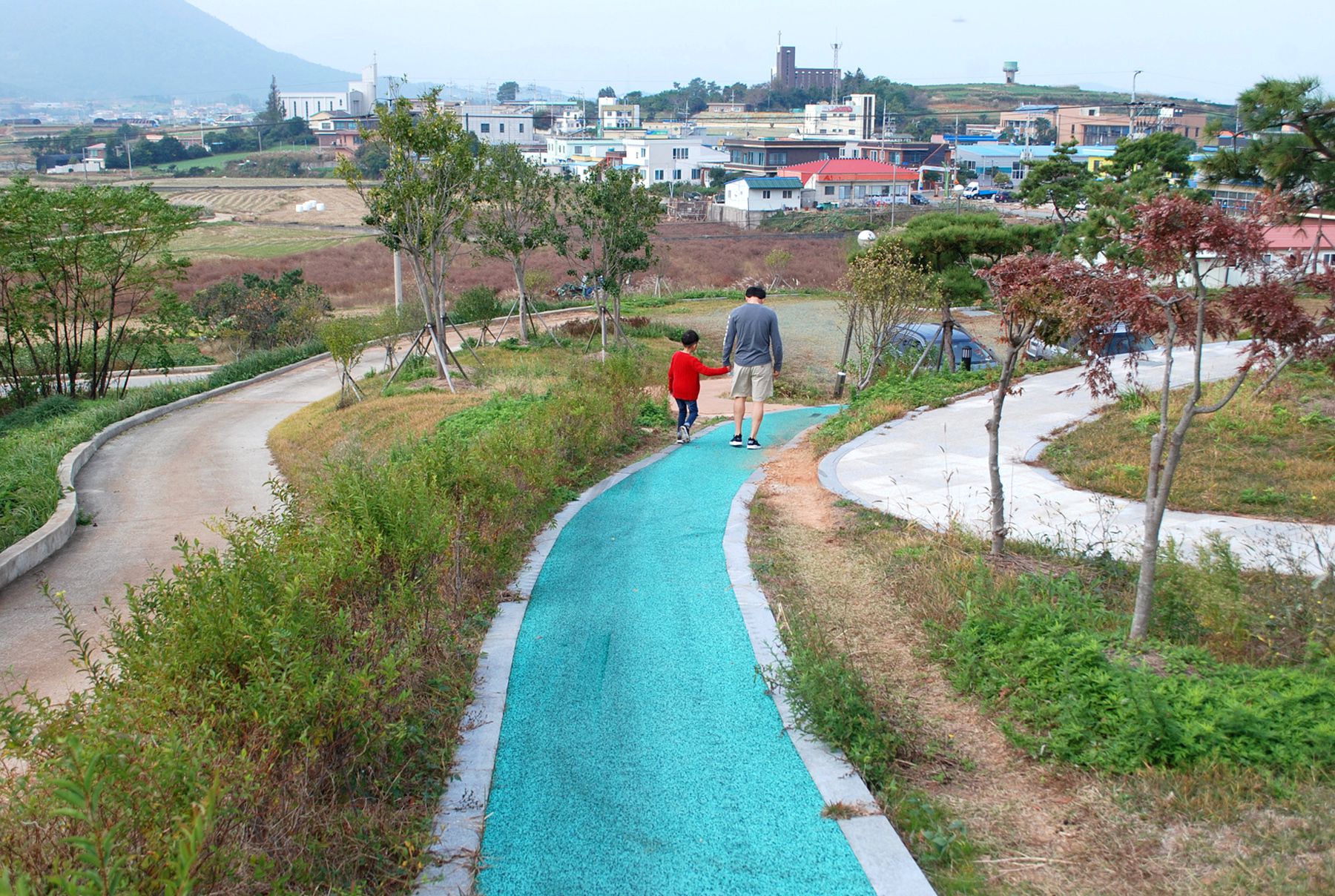 경사가 있는 산책로에는 우레탄 바닥이 시공되어있어 부상의 위험 없이 안전하게 다녀갈 수 있답니다.