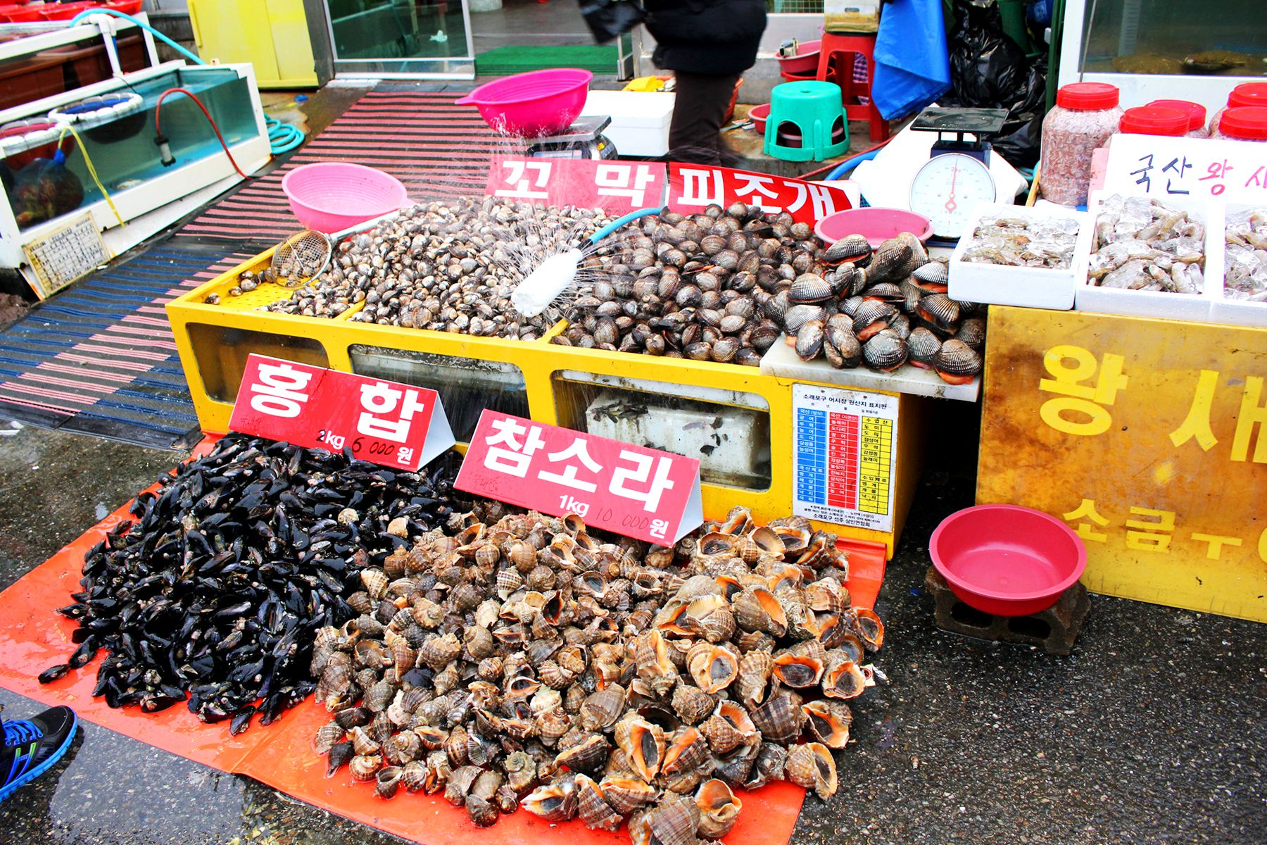 그래서 그런지 일반 시장에서는 보기 힘든 각양각색의 신선한 각종 해산물 먹거리가 가득한데요.