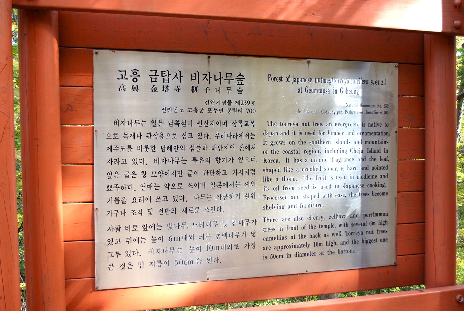 2016년에는 금탑사 주변의 비자나무숲이 '대한민국 아름다운 숲’으로 선정되었는데요,