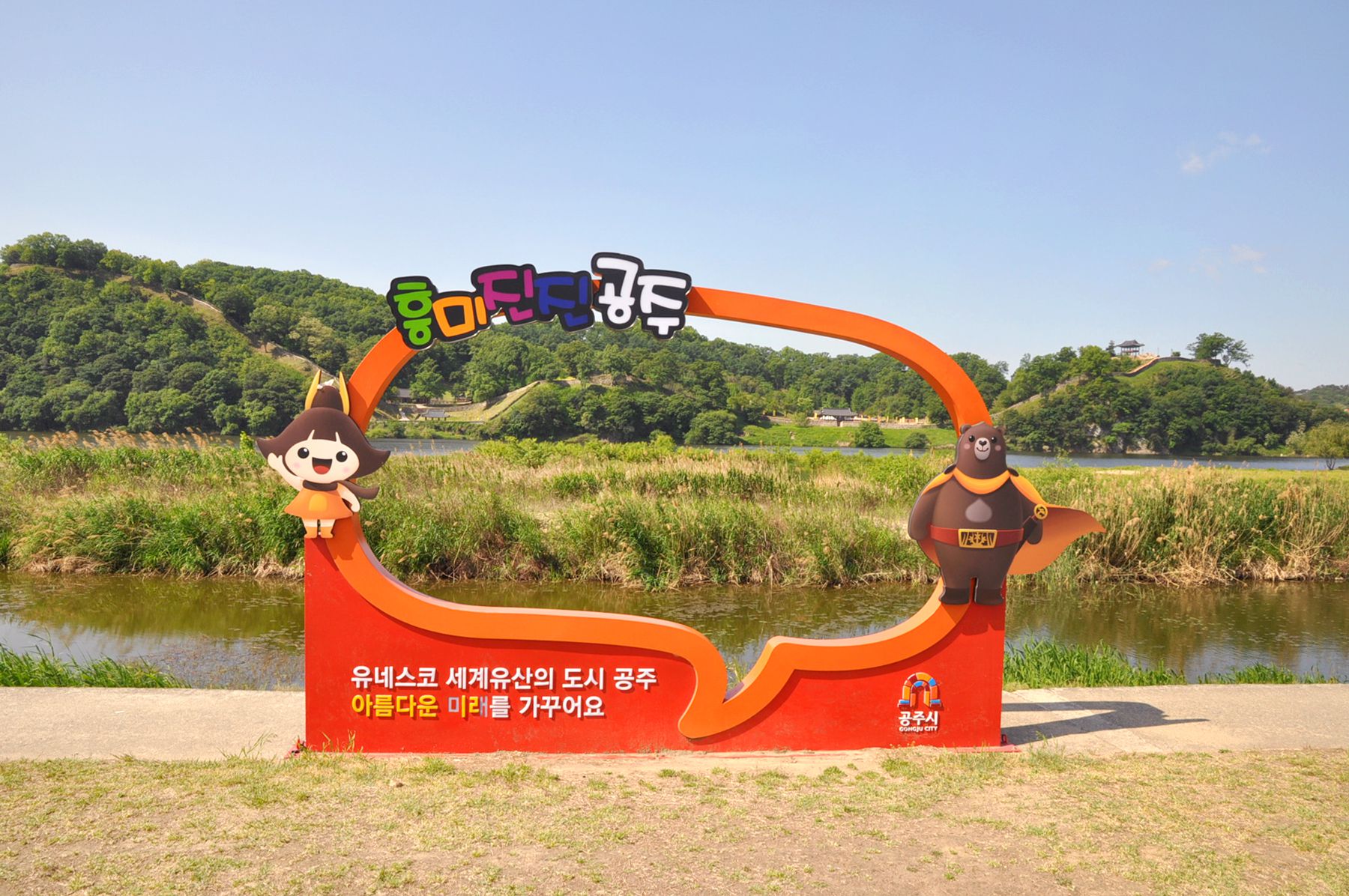 공주대교에서는 공주시의 마스코트 고마곰과 공주 조형물을 만나볼 수 있습니다.