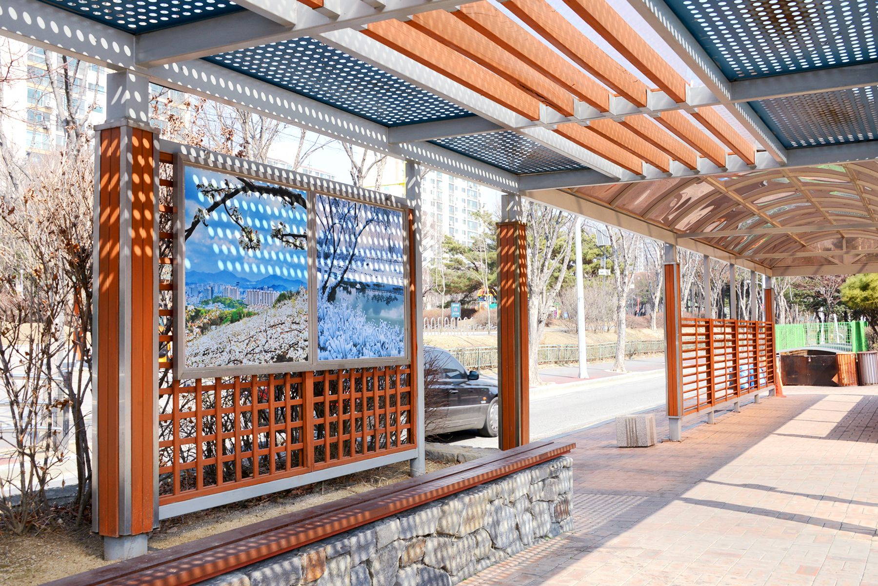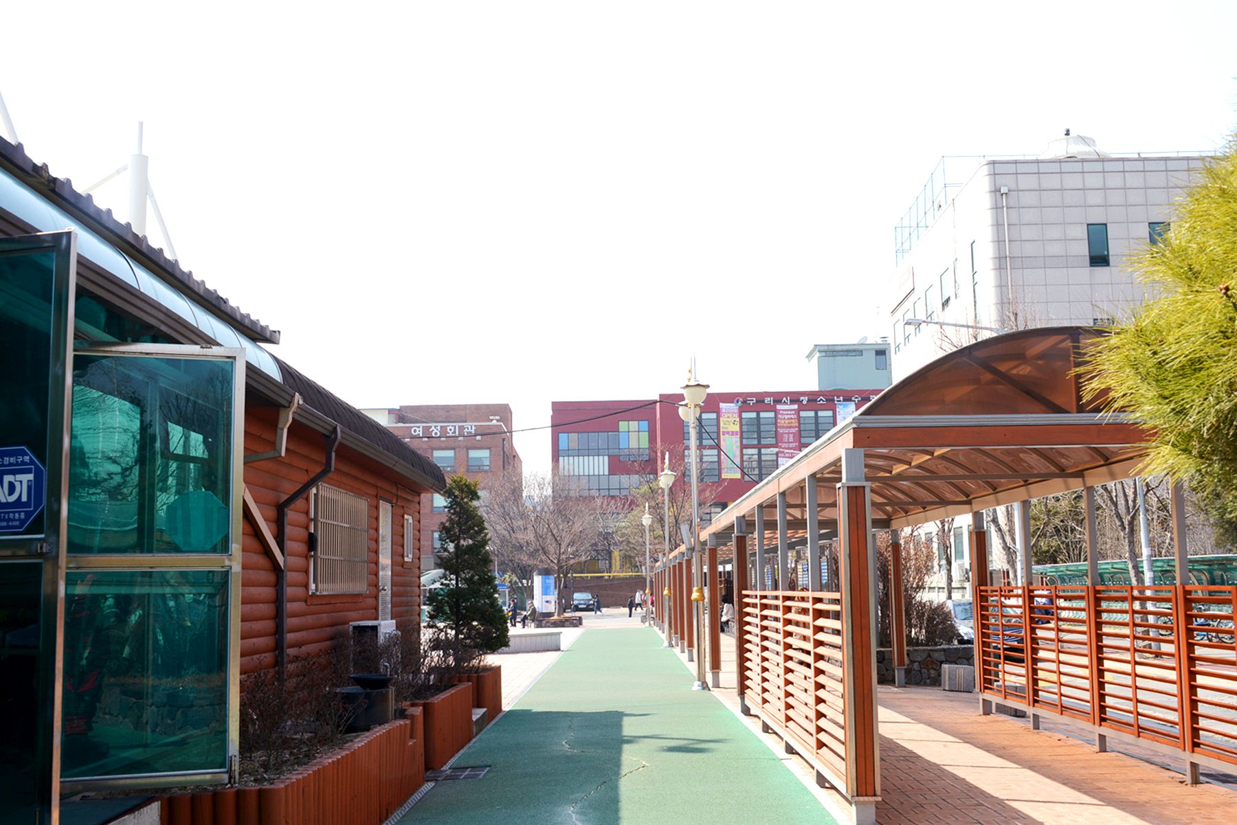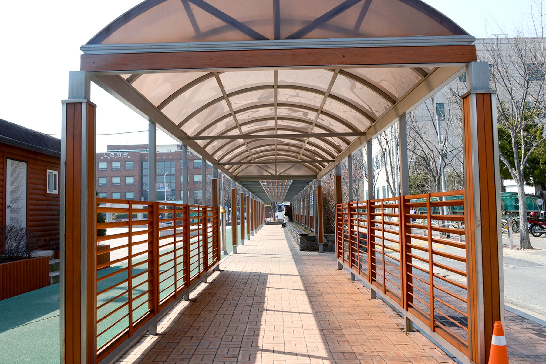 한켠에는 햇빛을 가려주고, 비오는날도 부담없이 방문할 수 있는 천장아케이드가 설치되어 있는 공간까지 구비되어 있어