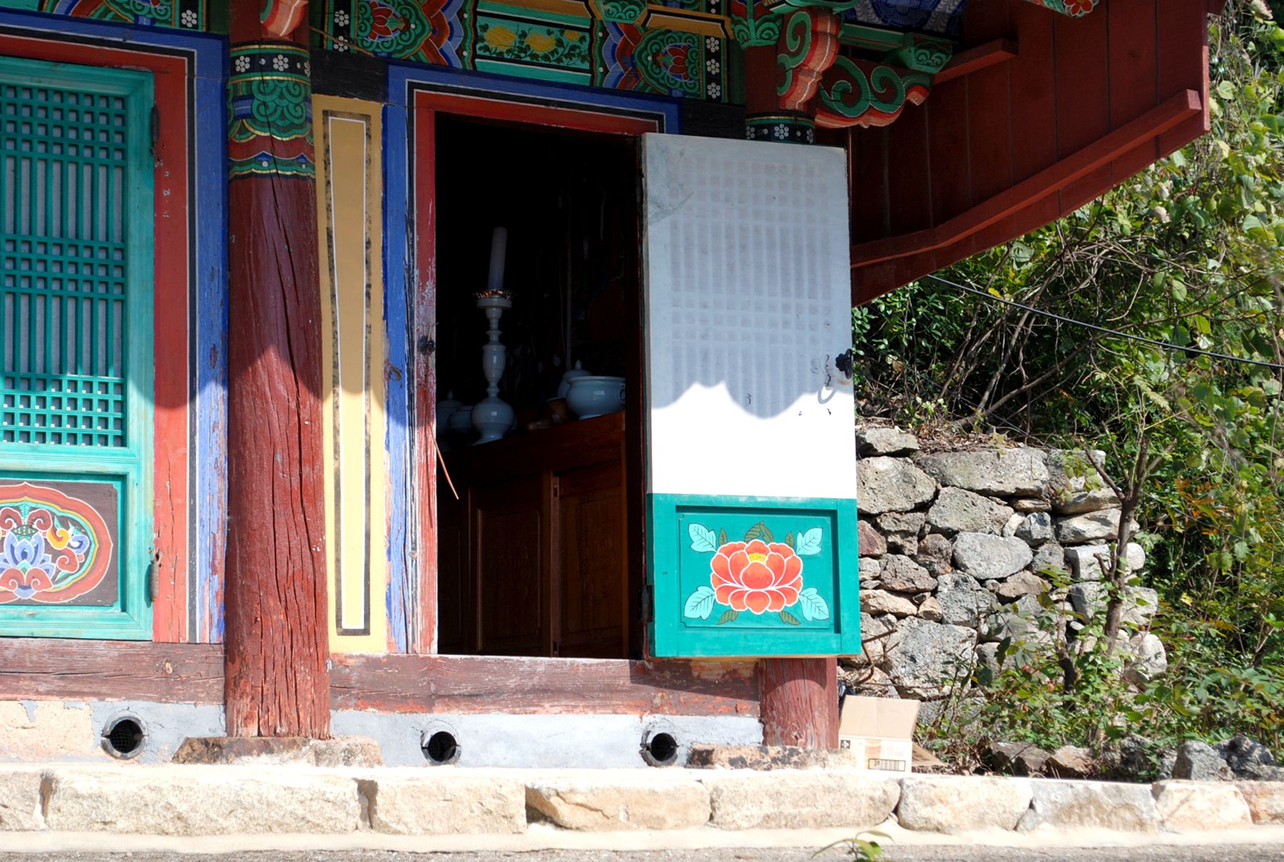 또한, 원갑사의 법당은 극락전으로 정면 3칸, 측면 1칸의 맞배지붕이며 전퇴를 두고있으며 창문은 띠살문으로 아주 작은 규모의 건물모습으로 만나볼 수 있습니다.