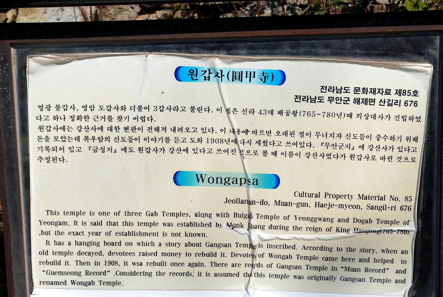 전라남도 무안군 해제면 산길리 강산에 위치한 '원갑사'를 소개합니다.