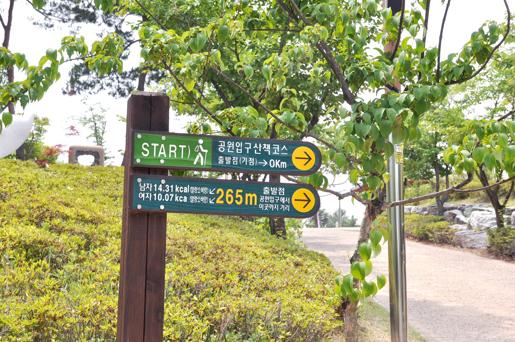 산책로 중간에는 각 지점과 거리가 표시되어 있어 운동량을 체크하며 걸을 수 있으며