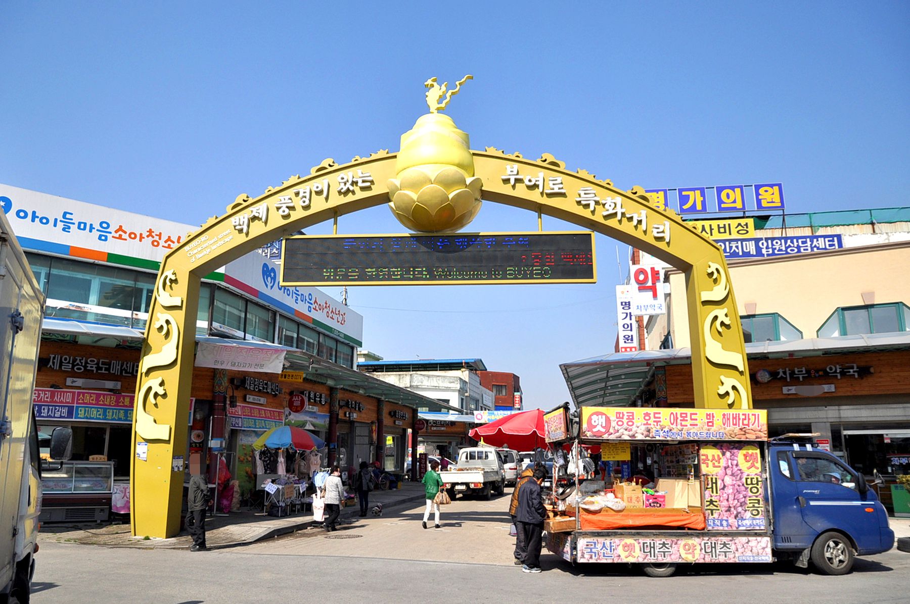 부여로특화거리에는 잘 정리된 점포들과 더불어 전통시장의 풍경까지 즐겨볼 수 있습니다.