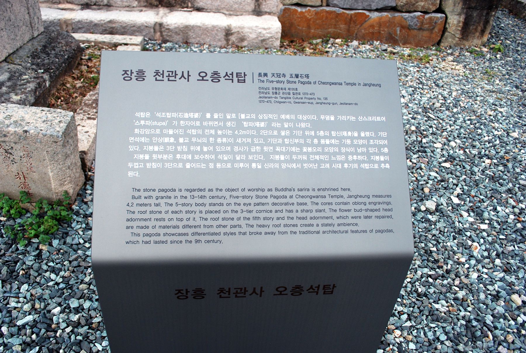 또한, 전라남도 유형문화재 제 135호인 천관사 오층석탑은 고려시대의 석탑으로 추측하고 있으며