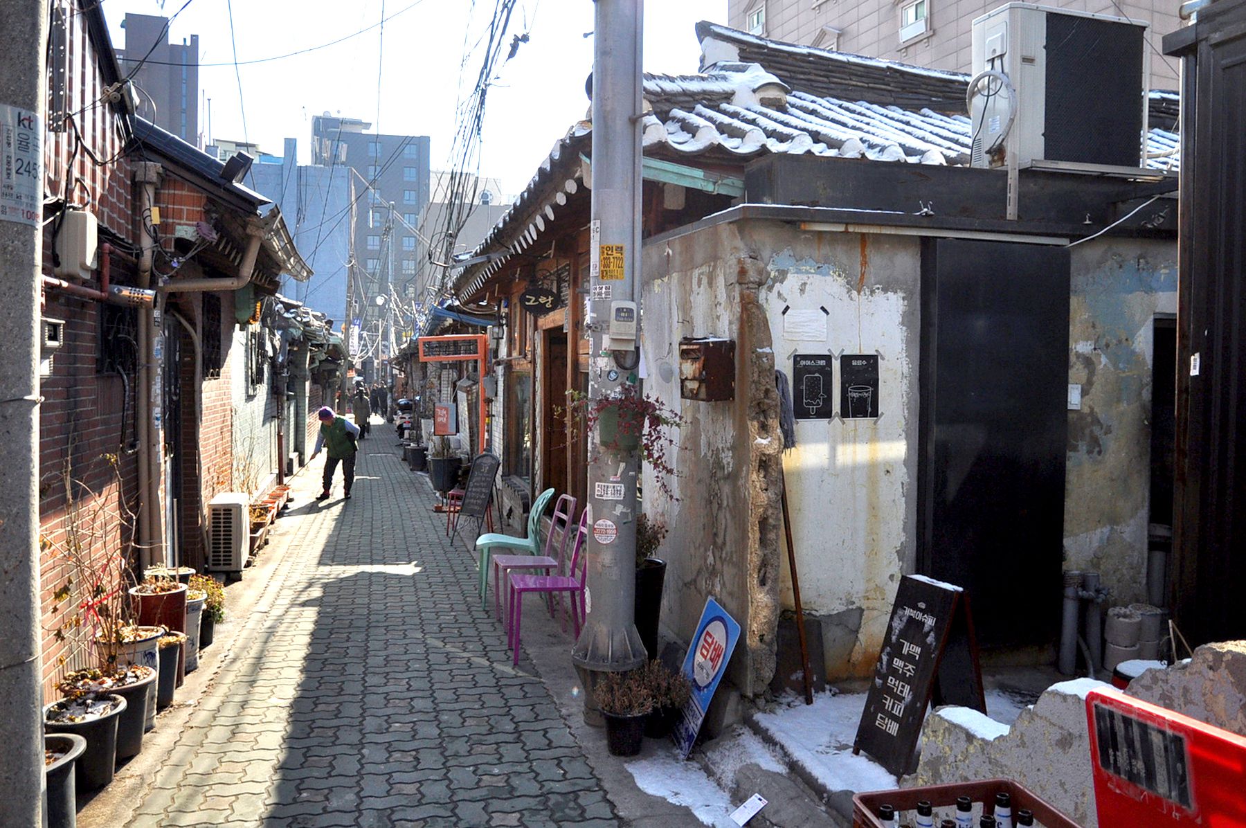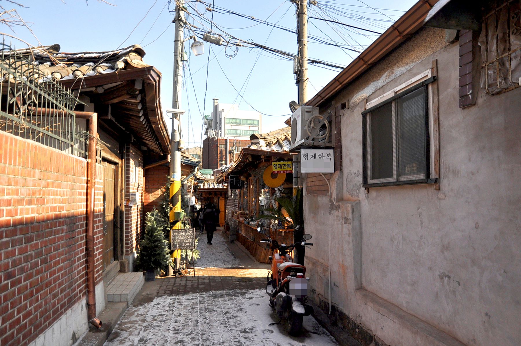 두사람이 같이 걷기 힘든 좁은 골목길은 70~80년대의 모습을 고스란히 담고 있으며 옛 모습을 만나볼 수 있는 익선동 한옥마을은