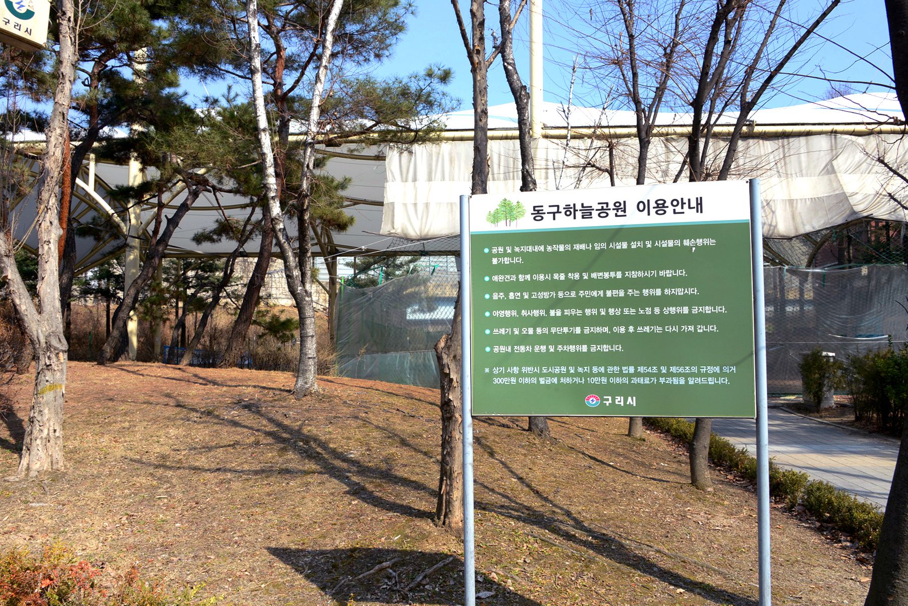 동구하늘공원은 본래 운동장만 있었으나 2011년 7월 구리시에서 5억원을 들여 배드민턴장과 족구장을 조성하였습니다.